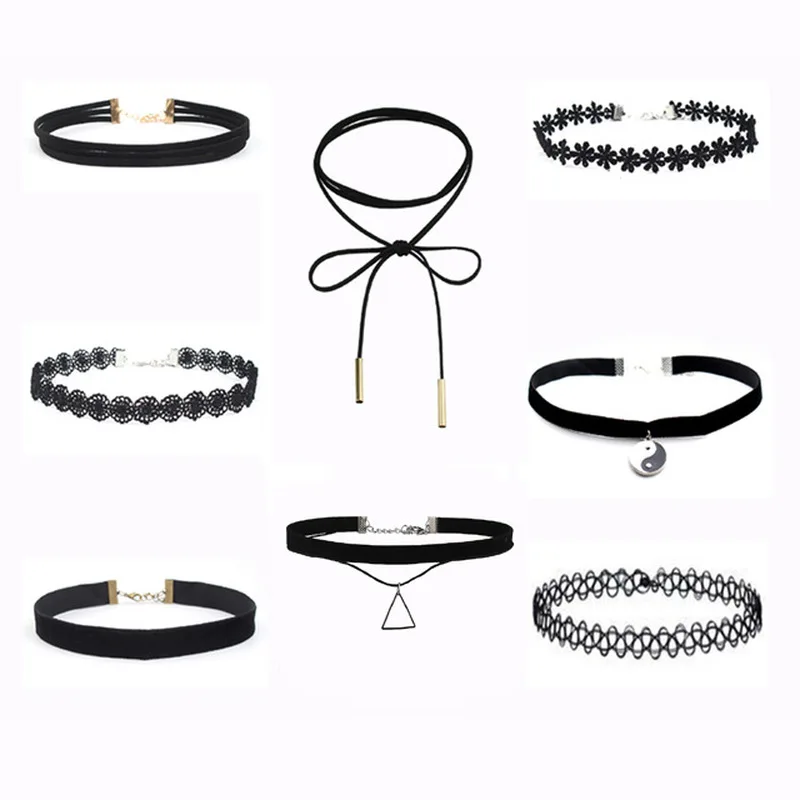 Женское бархатное ожерелье-чокер из черной кожи с ажурным дизайном, винтажные готические украшения ожерелье в готическом стиле