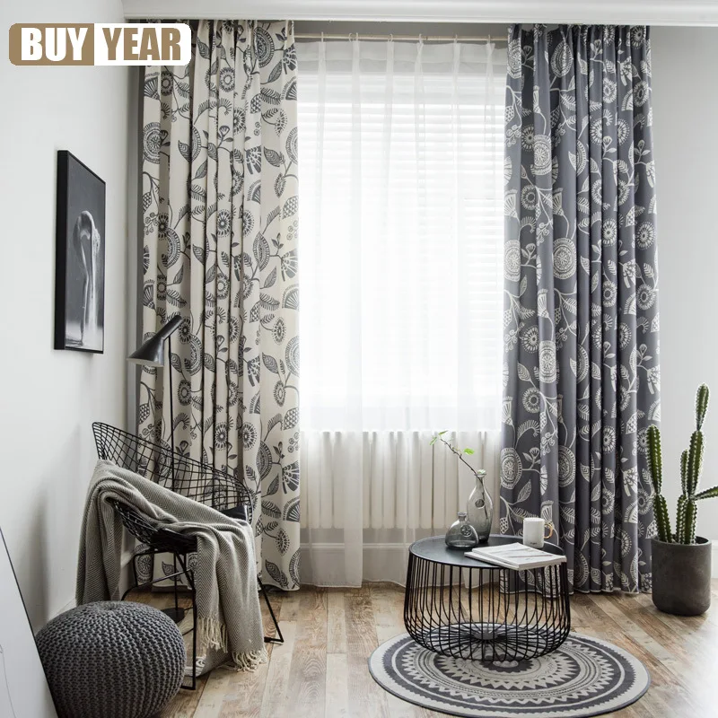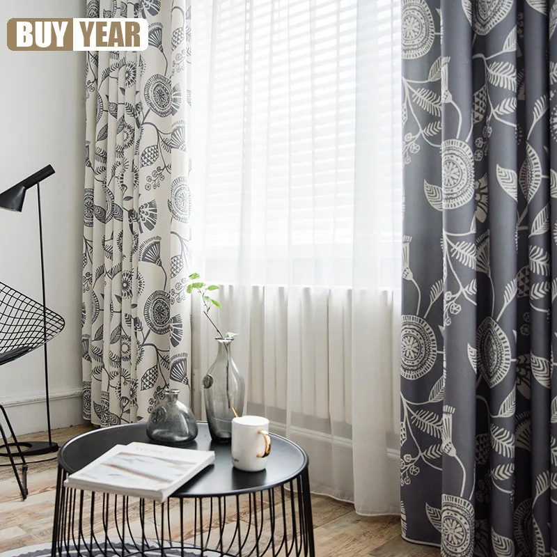 Затемняющие шторы из полиэстера и хлопка, с цветочным принтом