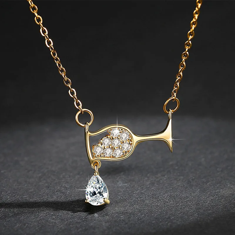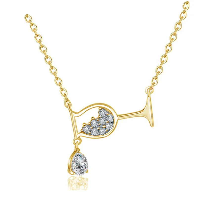 Цепочка золотого цвета с подвеской в виде бокала вина женская, ожер...