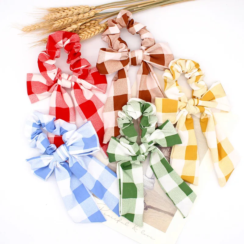 Ручная работа, милый большой бант, хвостик, держатель для волос, цветная клетка, принт, резинки, Ретро стиль, резинка для волос, эластичная резинка, элегантная