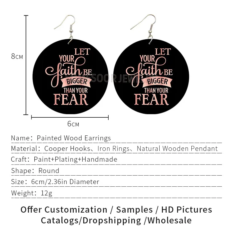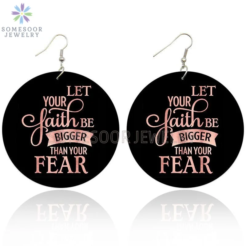 SOMESOOR двусторонние напечатанные вдохновляющие черные высказки деревянные серьги-капли страх позволяет веру больше писать художественные петли для женщин Подарки
