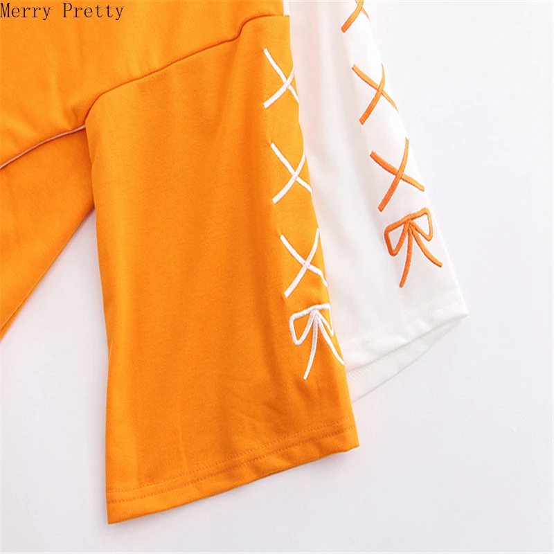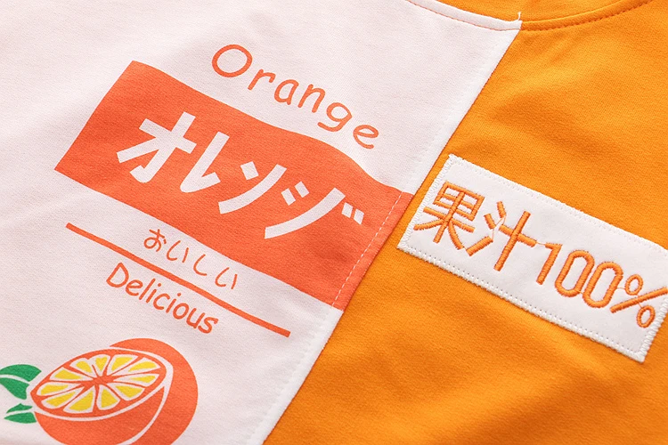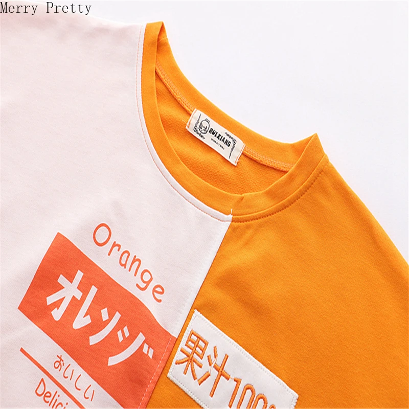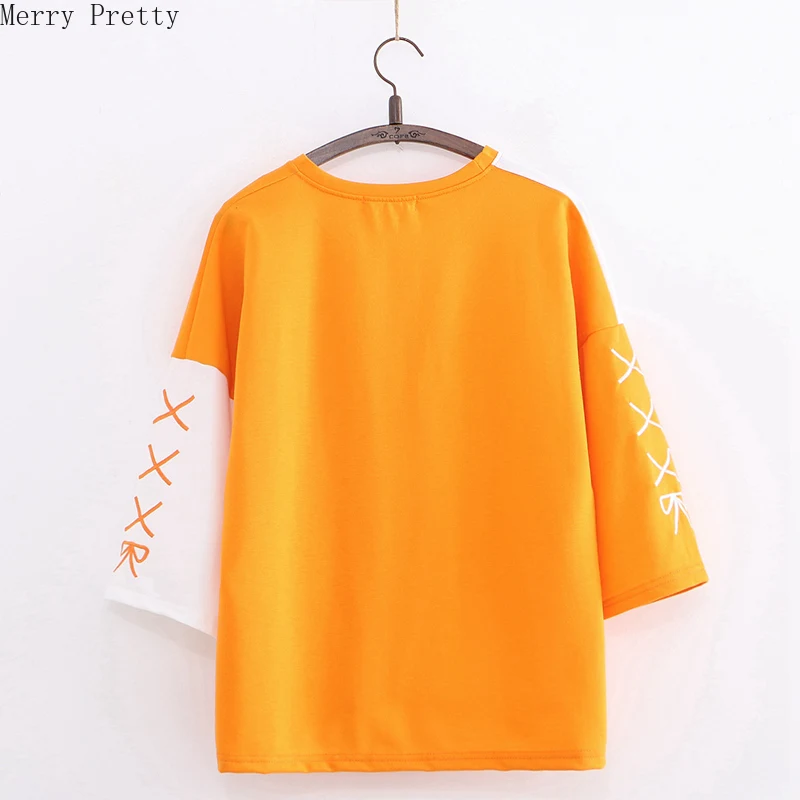 Женская хлопковая Футболка с вышивкой, оранжевая Милая футболка составного кроя в Корейском стиле с рукавом до локтя, лето 2020