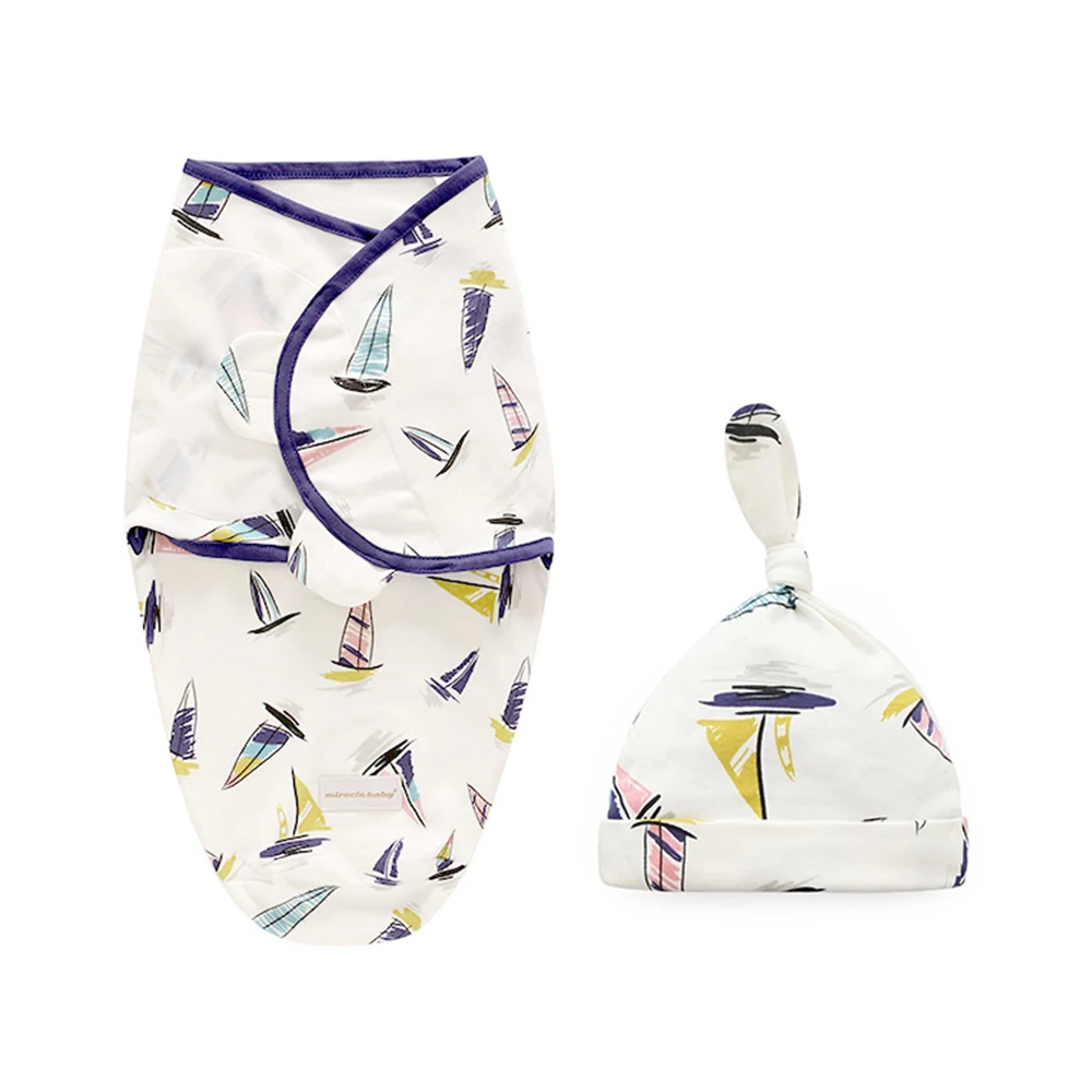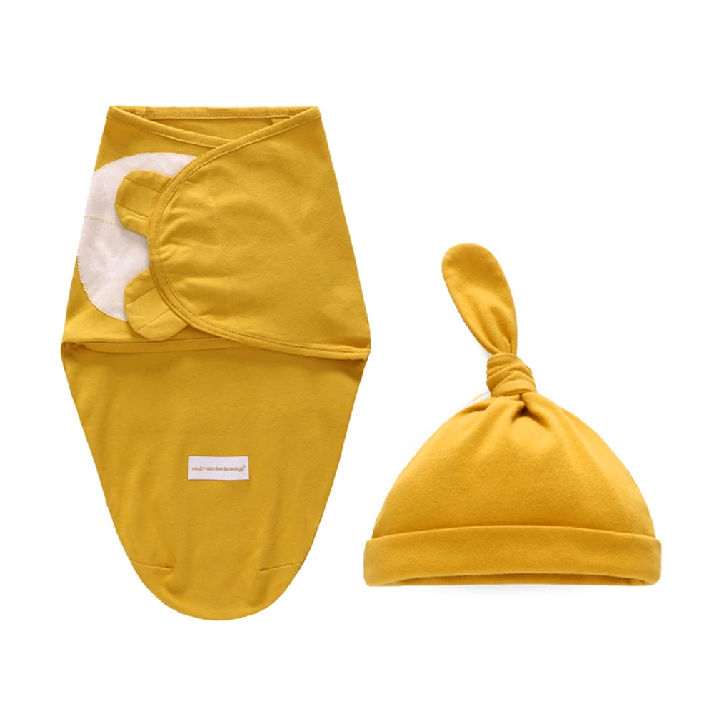 Пеленка и шапка для новорожденных, хлопковый комплект из 2 предметов, одеяло для приема, постельное белье, милый мультяшный спальный мешок для младенцев 0-6 мес.