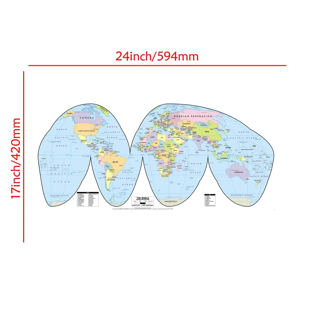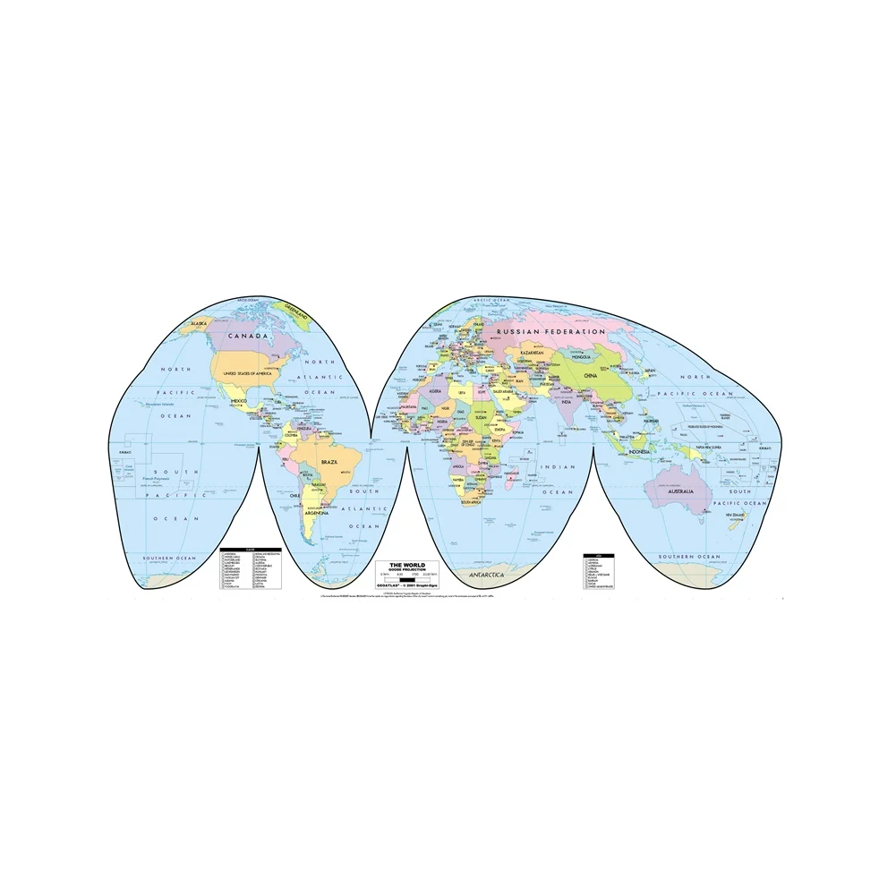 Проекция World Goode, размер A2, версия 2001, Проекция HD, печатная фотография, Настенная карта для домашнего декора