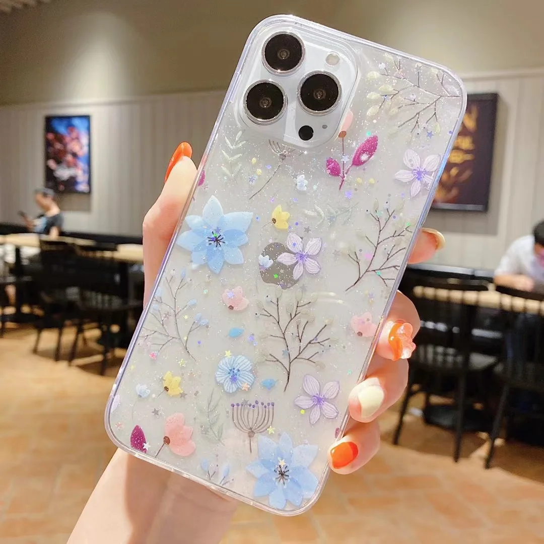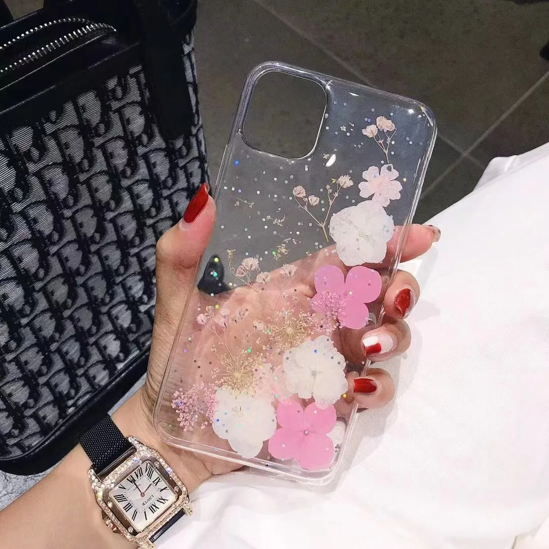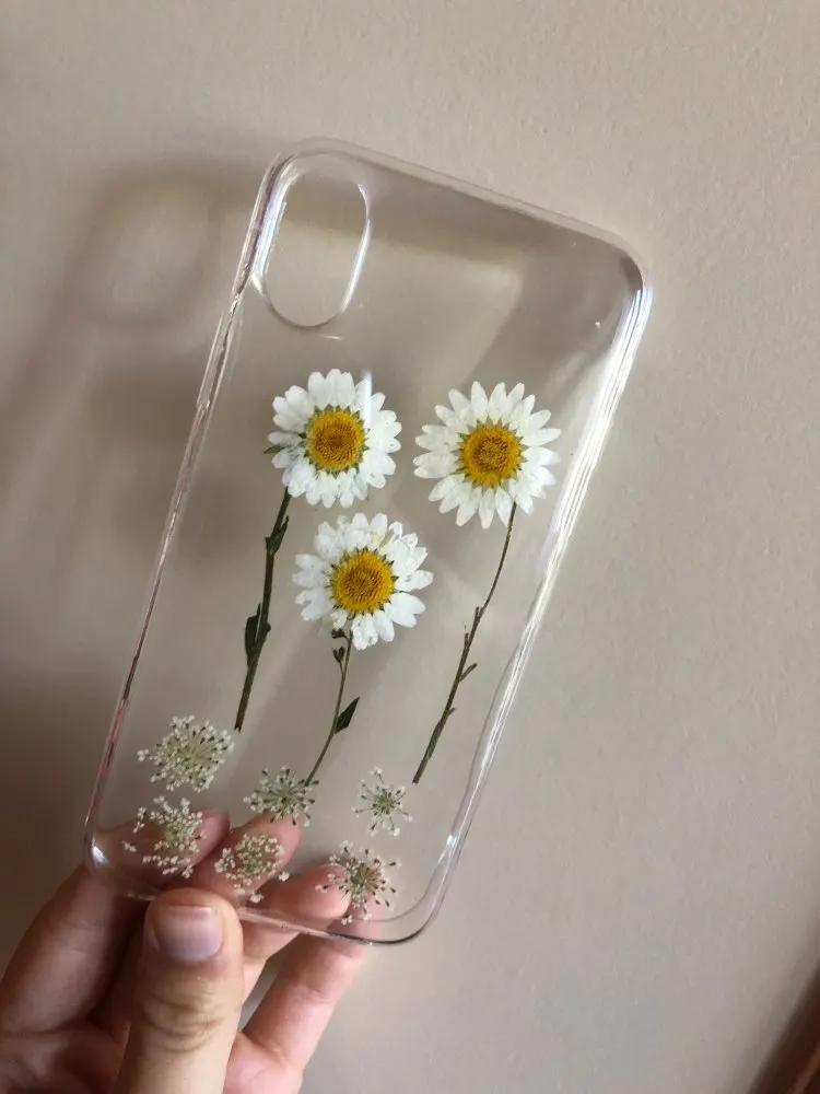 Чехол для телефона с настоящими высушенными цветами для IPhone 13 Pro Max, чехол для 8, 7 Plus, X, XR, 12, 11, чехол с эпоксидной маргариткой, прозрачный мягкий чехол из ТПУ