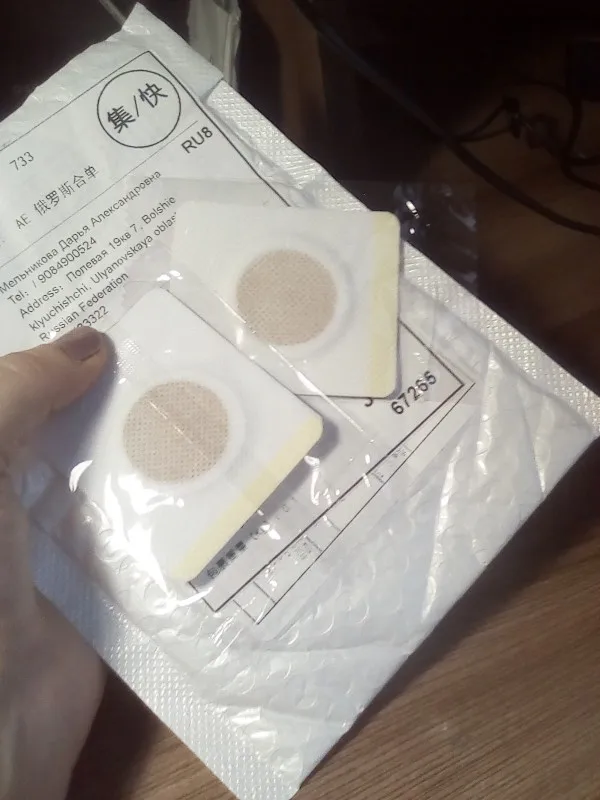 Товар получила. Пластыри заказываю не первый раз. Клею ниже пупка, ношу двое суток. Если есть раздражение, клею через несколько дней. Девочки они действительно отбивают аппетит, есть хочется меньше. Спорт, диета, патчи в помощь. Решать вам!!!