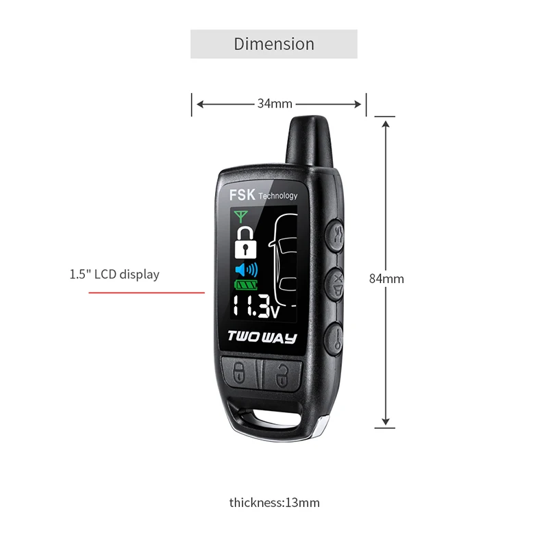2-сторонняя Автомобильная сигнализация с перезаряжаемым 1,5 "ЖК-брелоком