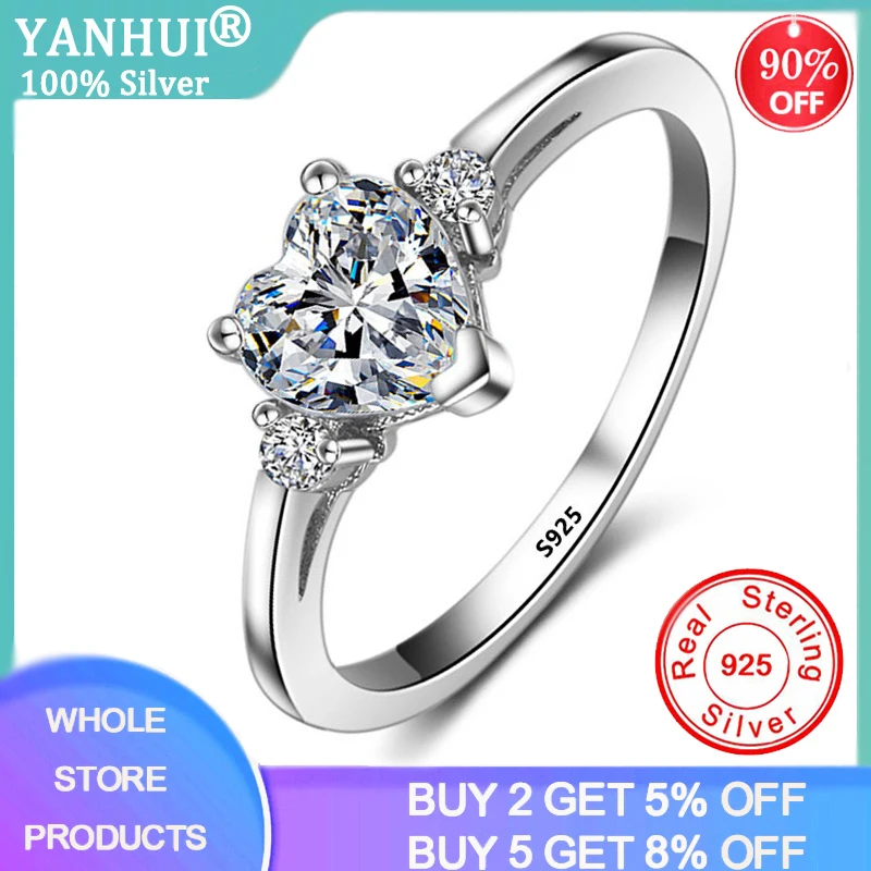 Кольца обручальные в форме сердца, из серебра 100% пробы с кубическим цирконием, размеры 3, 4, 5, 6, 7, 8, 9, 10, 11, 12, 13
