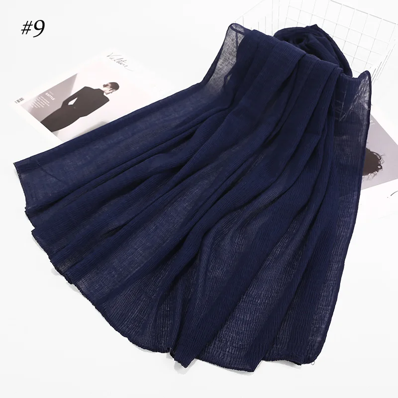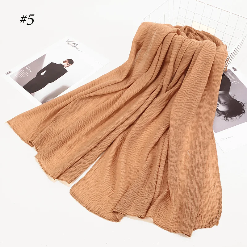 Хлопок морщин хиджаб шарф простой плиссированный мусульманские платки блестящие шарфы Пашмина головной платок Обертывания тюрбаны обертывания повязка на голову 1 шт