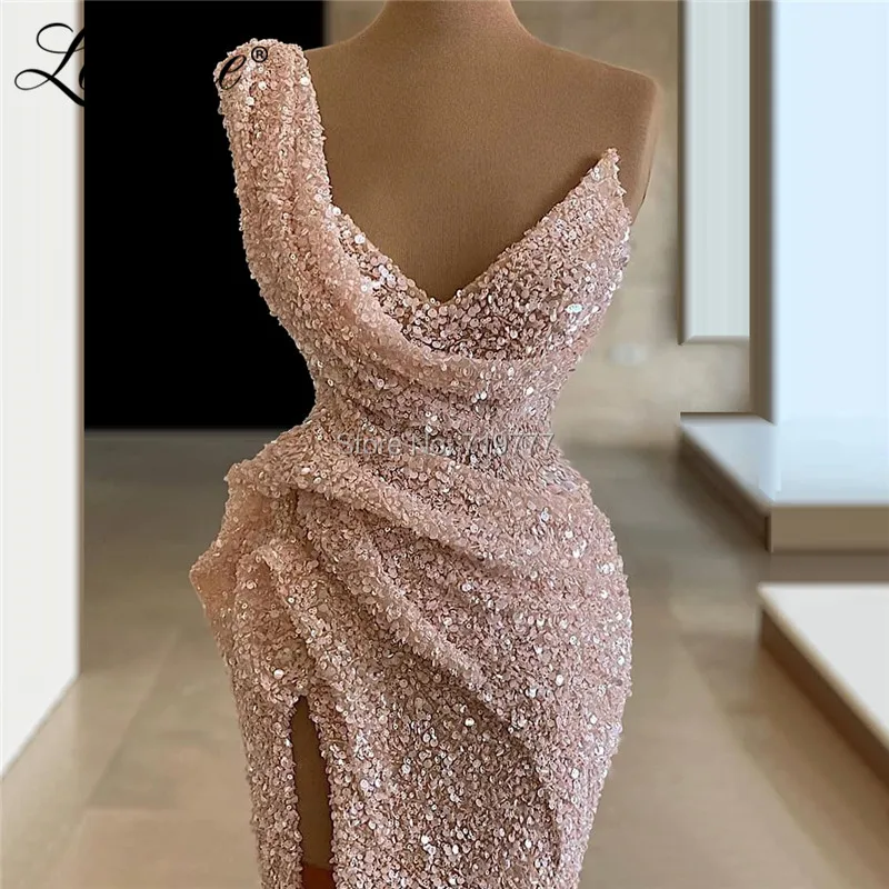 Розовое платье для выпускного вечера с бисером 2020, арабские официальные кафтаны с высоким разрезом, африканские вечерние платья Дубая