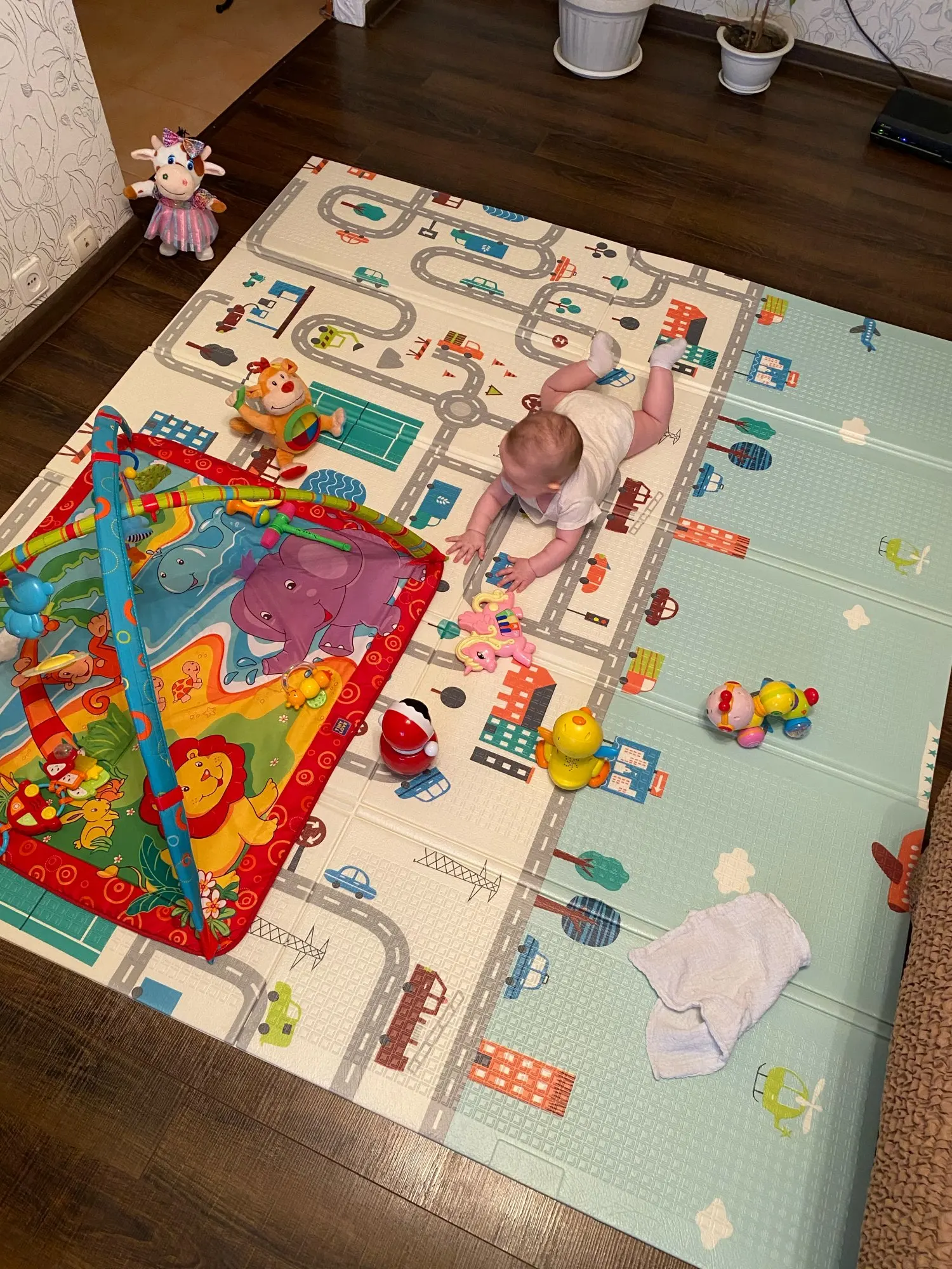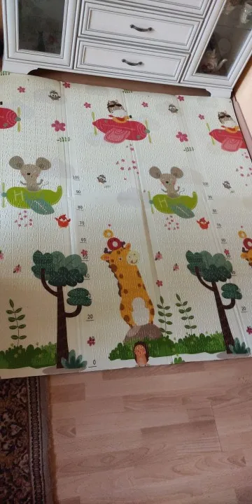 Классный коврик, мягкий, размер большой самый брали, складывается, есть чехол с ручкой, доставка курьером до квартиры.