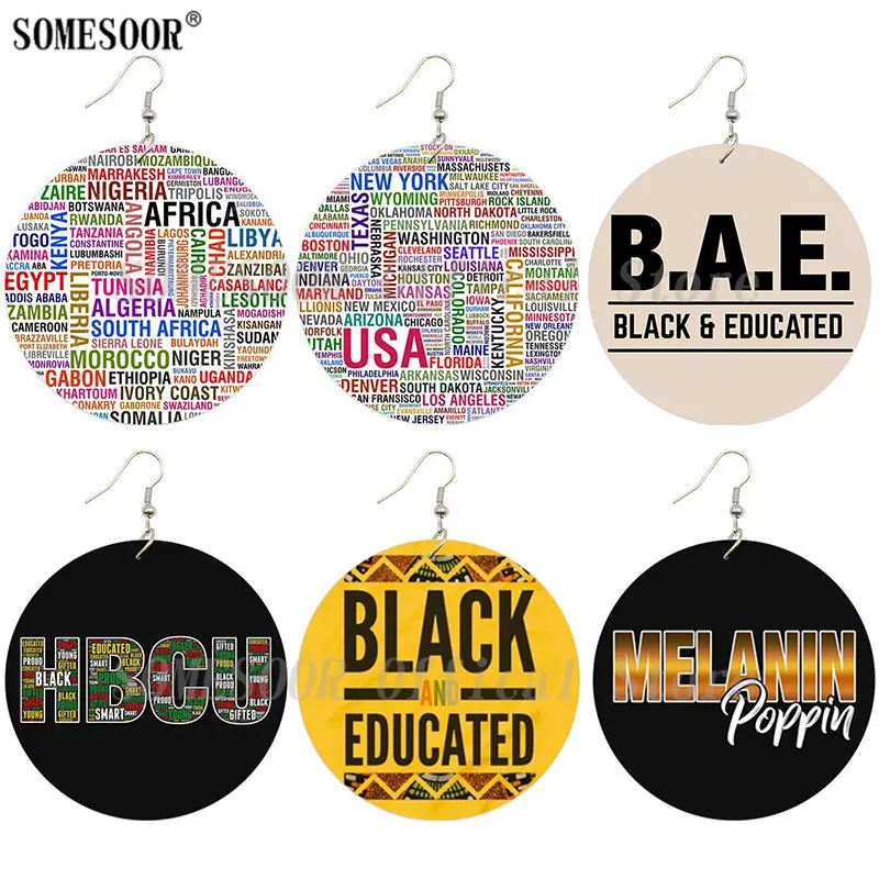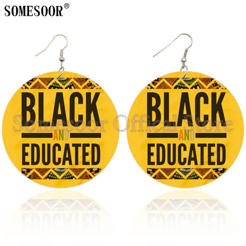 SOMESOOR черные образованные меланин поппин художественные деревянные висячие серьги объединенные американские африканские HBCU печатные женские деревянные петли подарки