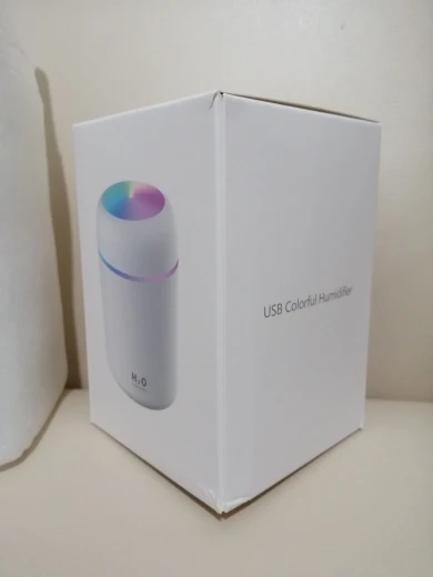 Очень хороший увлажнитель! Конечно для увлажнения воздуха всей комнаты не совсем подходит, так как маленький (размером с большую кружку), а вот для ароматерапии супер! Пробовала эфирное масло Ель, очень понравилось! Доставка была до двери, что крайне удобно! На увлажнителе всего 1 кнопка и выход микро USB. (провод в комплекте без блока). Имеет несколько режимов выпуска пара и подсветки: - пар может выходить постоянным потоком и при коротком нажатии попеременно через каждые 3 секунды; - включается увлажнитель без подсветки, длительное нажатие на кнопку включает белый свет. Следующее длительное нажатие переключает на подсветку радужную, которая бегает по кругу.