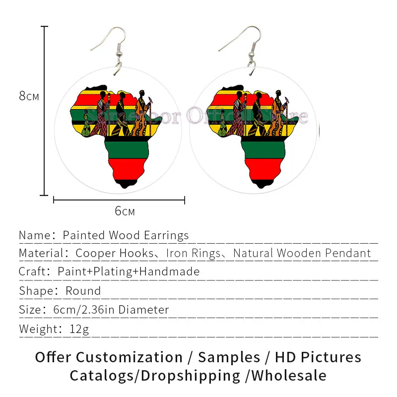 SOMESOOR афро косы поп-арт печатные деревянные висячие серьги черна...