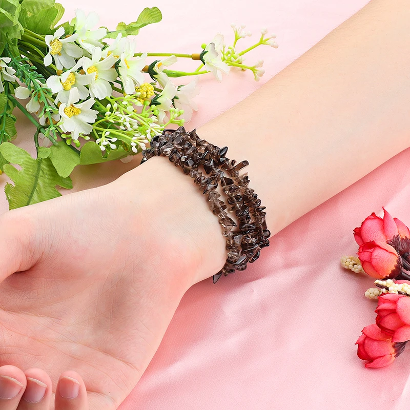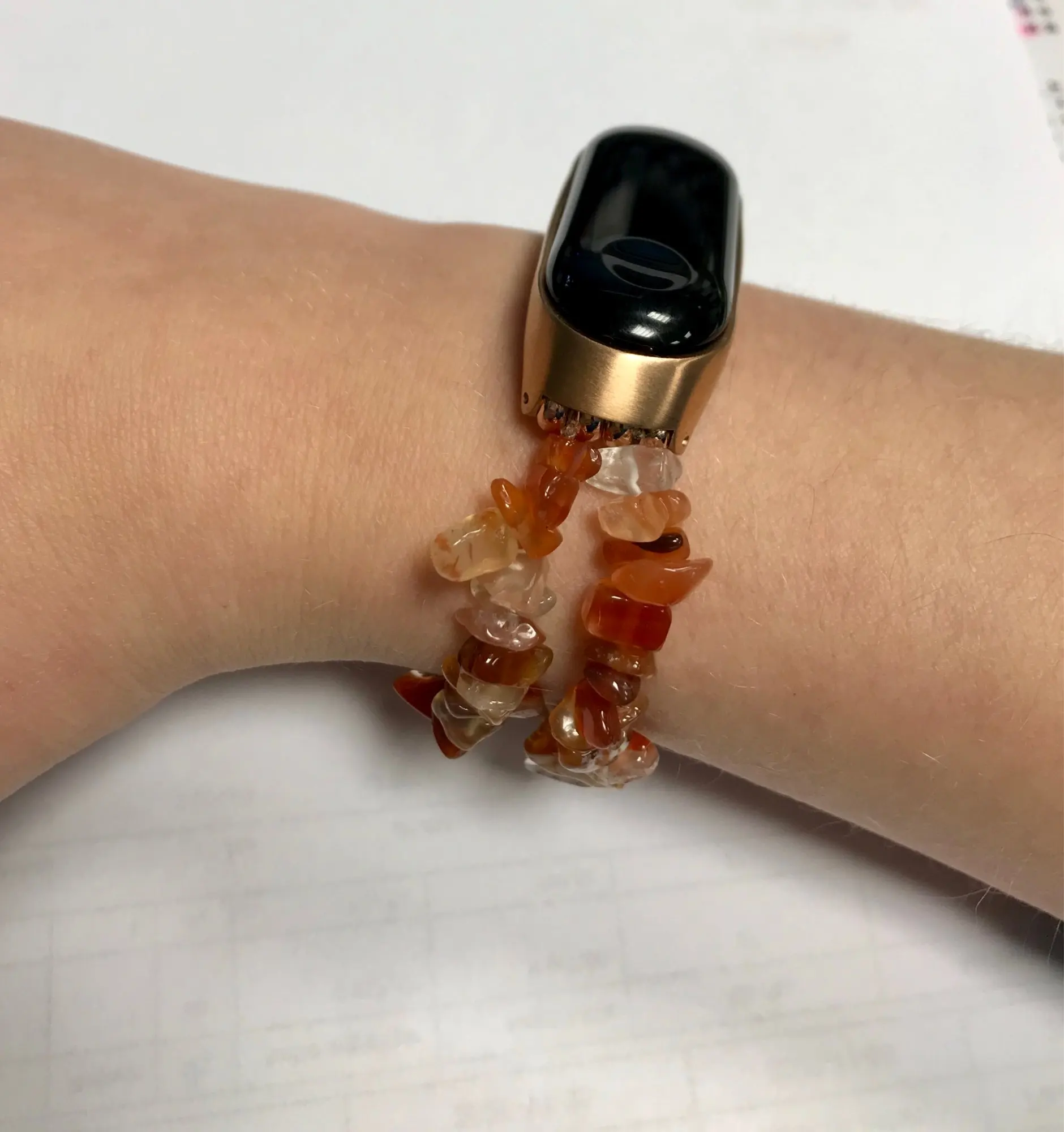 из минусов: 1) извлечь часы из браслета очень сложно, практически невозможно, 2) брала розовый браслет в три нити камня, каждая нить разной длины, 3) на тонком запястии болтается , резинки хлипкие