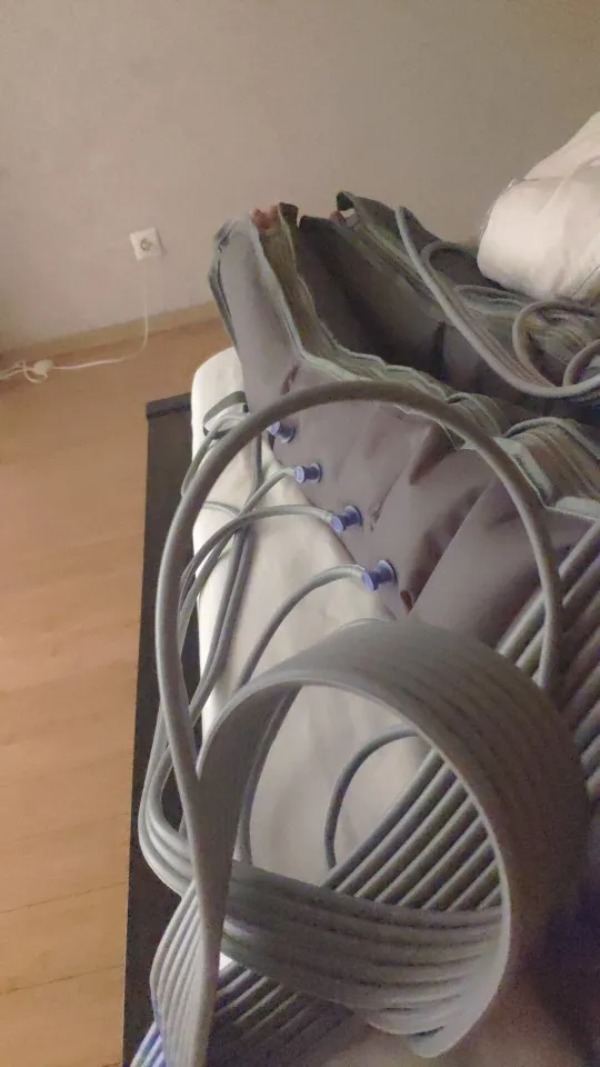 Я искал аппарат давления, чтобы продолжить домашнее kinesitherapie. Что мы говорим, что этот продукт не стоит машин, используемых профессионалами, но за эту цену я очень доволен им. Устройство очень простое в использовании: кнопка включения/выключения и две вращающиеся кнопки. Первый определяет продолжительность (0-35 минут или неопределенное время), второй интенсивность. Что касается интенсивности, вы можете изменить его во время текущего программы, максимум достаточно хорошо сжимается, не причиняя вреда (наконец, все зависит от чувствительности). Для сжатия устройство набухает только две воздушные камеры одновременно. Сначала это довольно разочаровывает, но мы делаем это. Уровень результата: легкие ноги и гарантированный расслабляющий эффект. Большая проблема, вилка поставляется не совместима с французскими розетками, мне пришлось купить адаптер. Продавец был очень отзывчив, чтобы ответить мне, даже если он ничего не мог сделать для этих неудач. # Avis