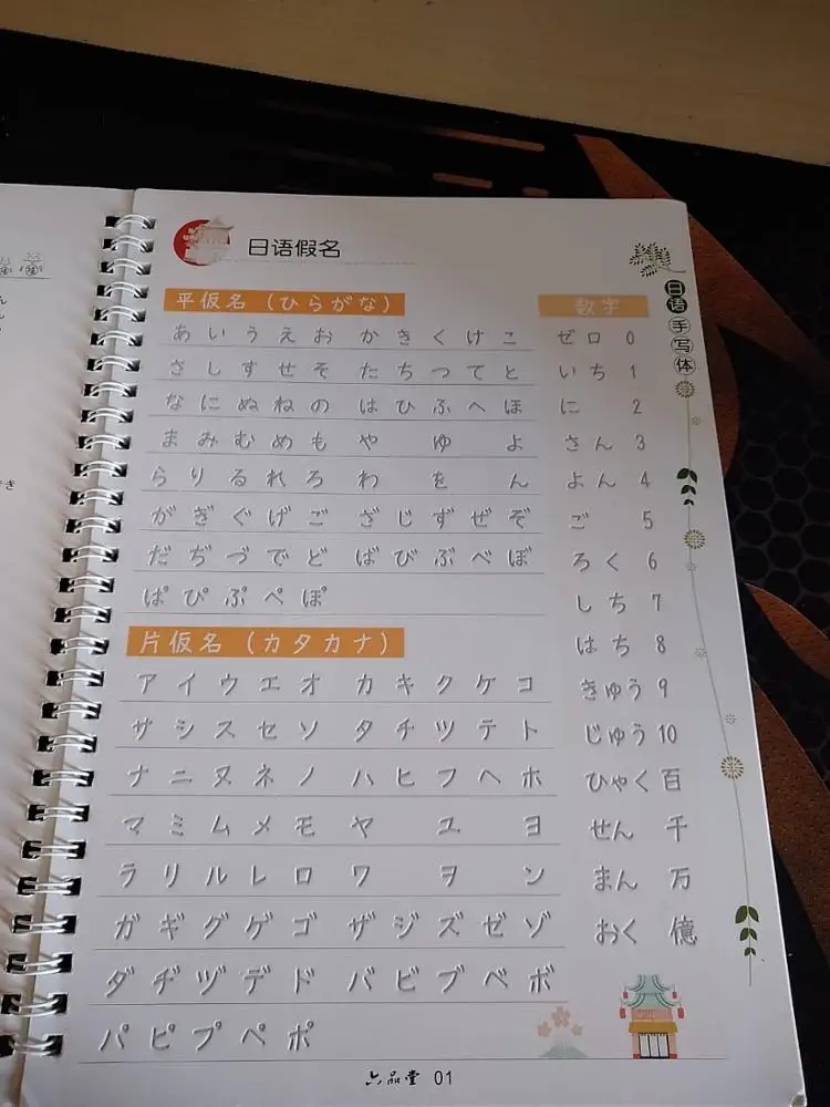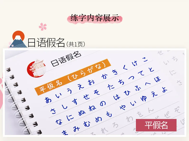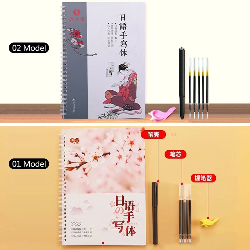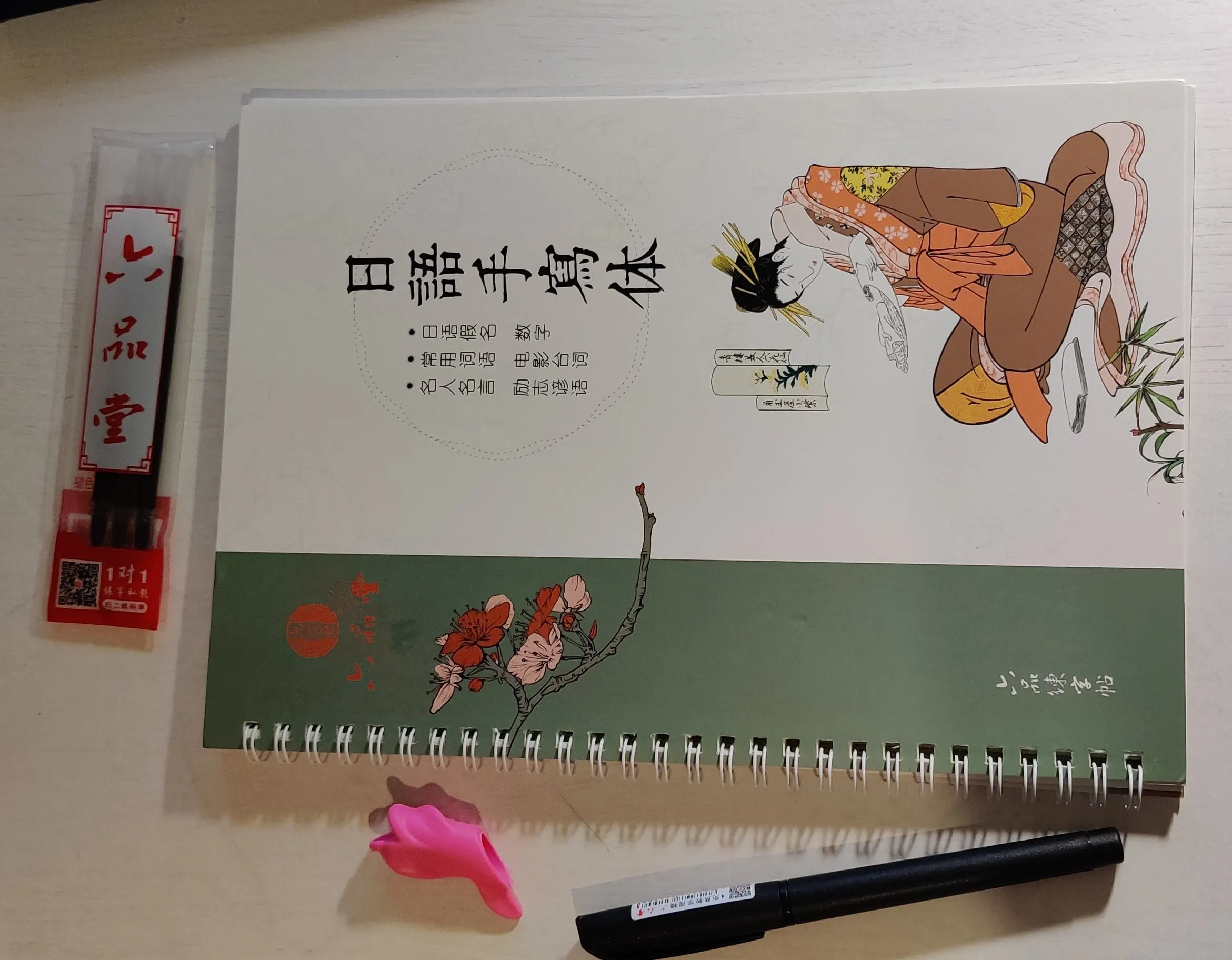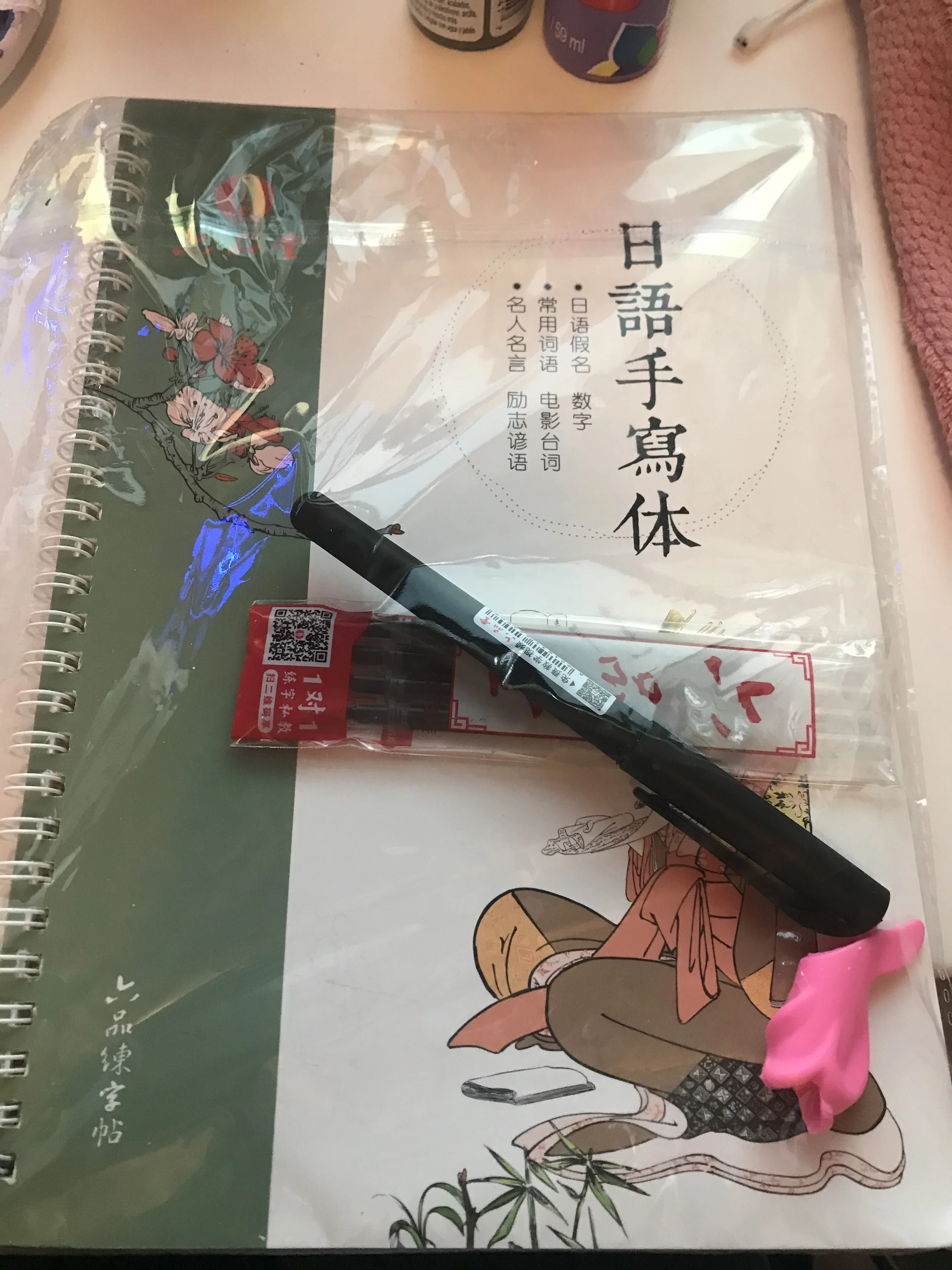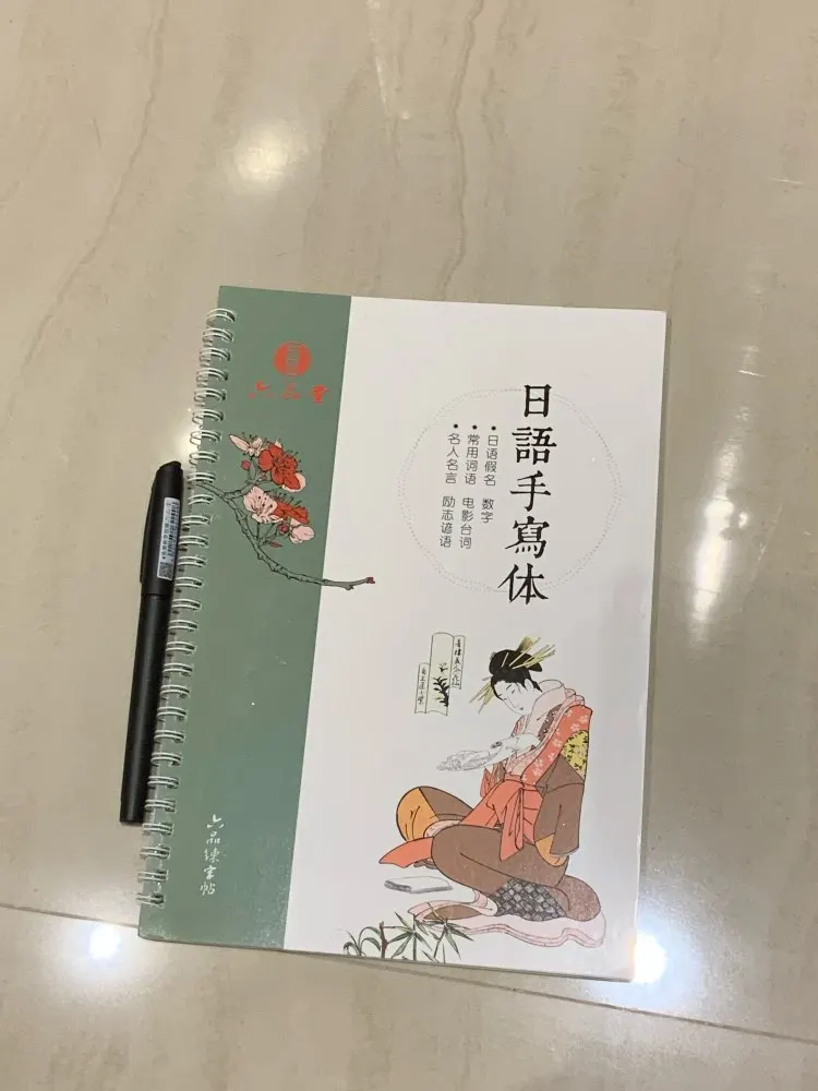 Хорошая книжка для тренировки письма. Всё как на фотографии. В комплекте идёт ручка с удобной насадкой и исчезающими чернилами. Исчезают на следующий день. Продавец положил мне целых 10 стержней для ручки, что меня очень радует. На первой странице находятся две слоговых азбуки: хирагана и катакана. Каждый разворот книги состоит из предисловия на китайском и слов или предложений на японском для написания. Символы углублены и по ним удобно вести ручкой. Внизу предложений мелким шрифтом также есть перевод. Предисловия а также перевод японских слов написаны на китайском, но с помощью интернет-переводчика по фото можно быстро перевести на нужный вам язык.