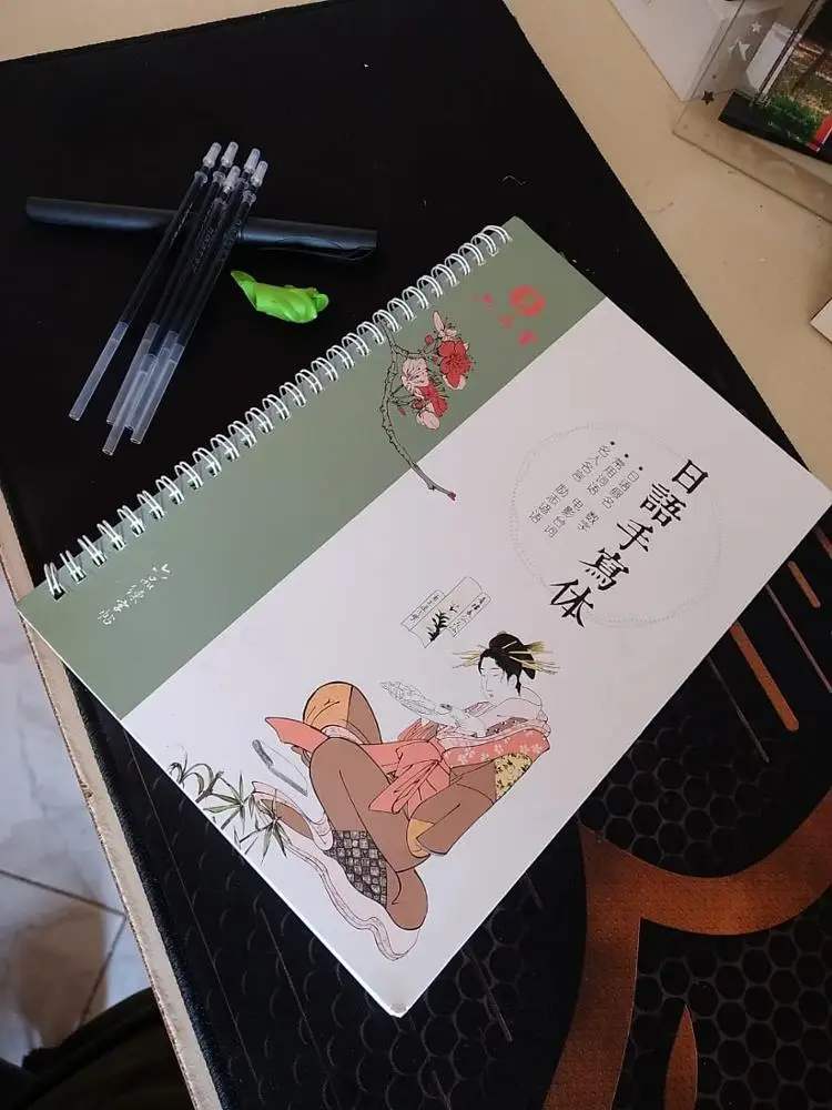 Отличная практическая книга! Имейте в виду, что у него только японский и китайский языки, но нет необходимости в любом другом языке, так как вы можете прекрасно практиковаться в японском стиле. И ручка и чернильные картриджи плюс. Отличный продукт, отличный продавец и очень быстрая доставка. 5 звезд очень хорошо заработали!