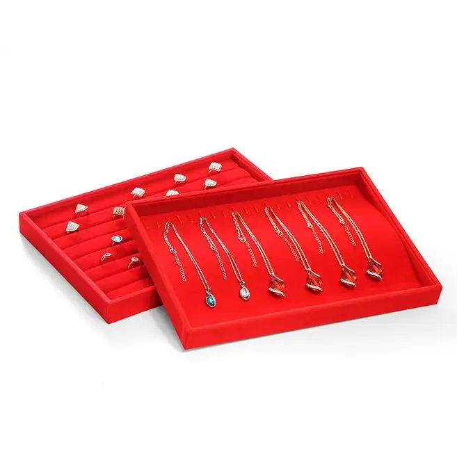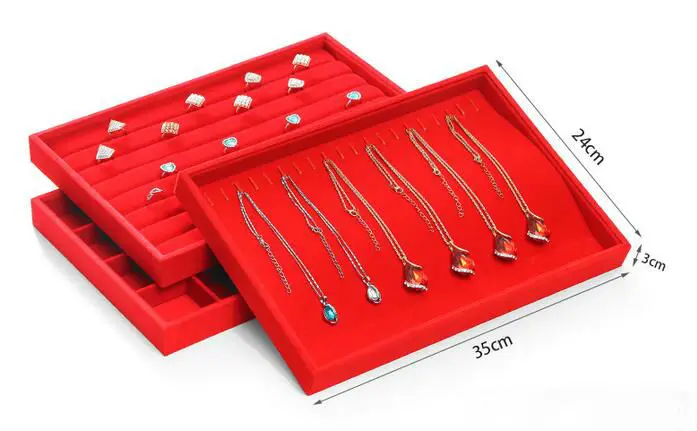 Роскошный лоток для ювелирных изделий из красного бархата, органайзер, коробка для хранения, держатель для часов, ожерелье, кольцо, серьги, подвеска, подставка, серия для женщин