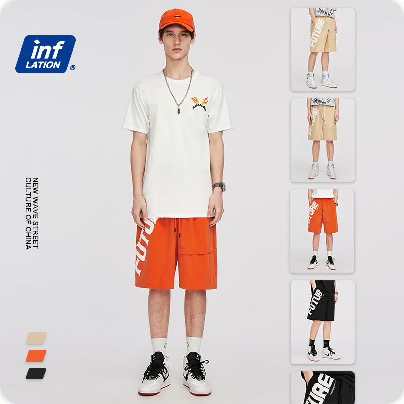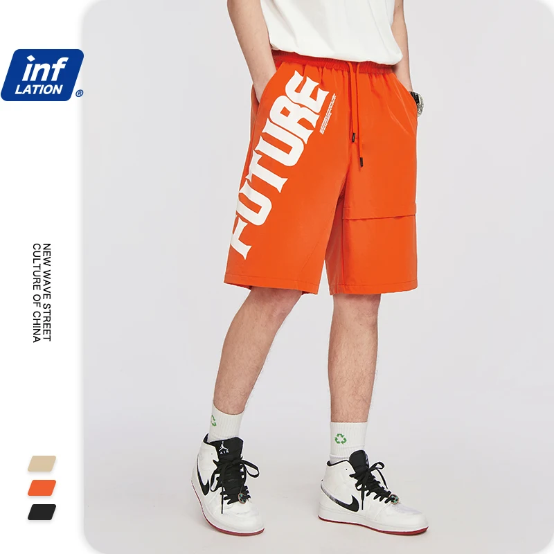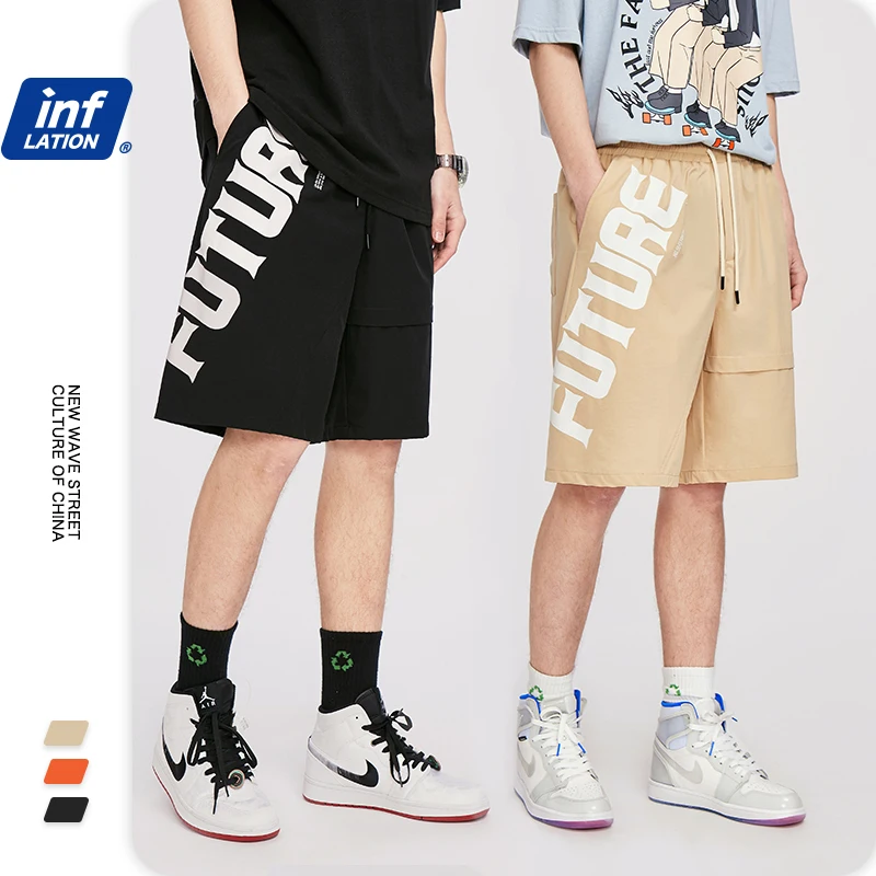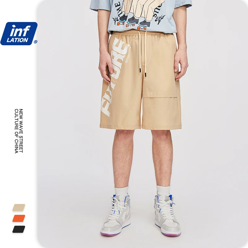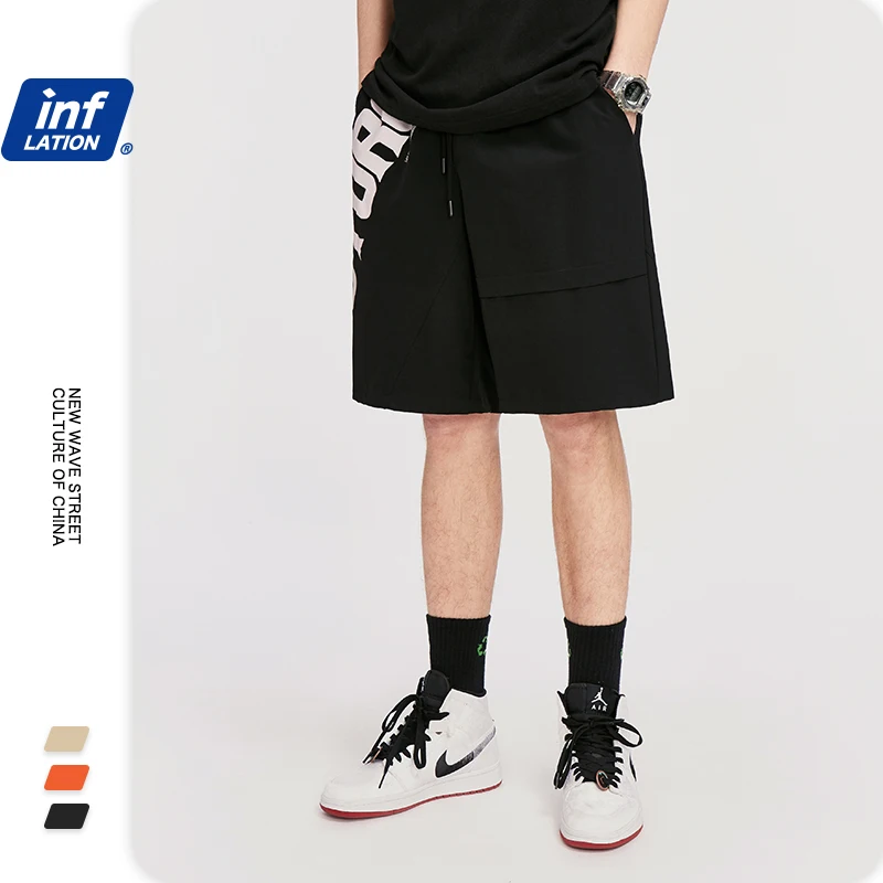INFLATION мужские короткие шорты, эластичный пояс, хип-хоп, мужские шаровары с буквенным принтом, свободные уличные мужские шорты 3011S20