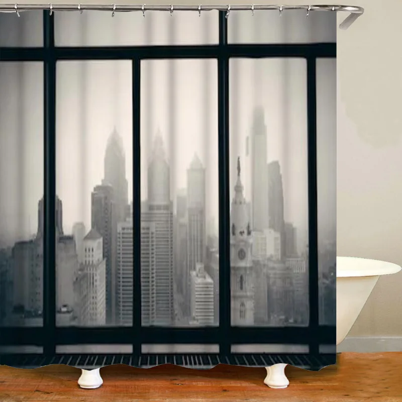 Современный США Филадельфия город душевая занавеска Набор окно на крыше вид 3D ванная комната занавеска горизонт знаковые коврики для ванной ковер Декор