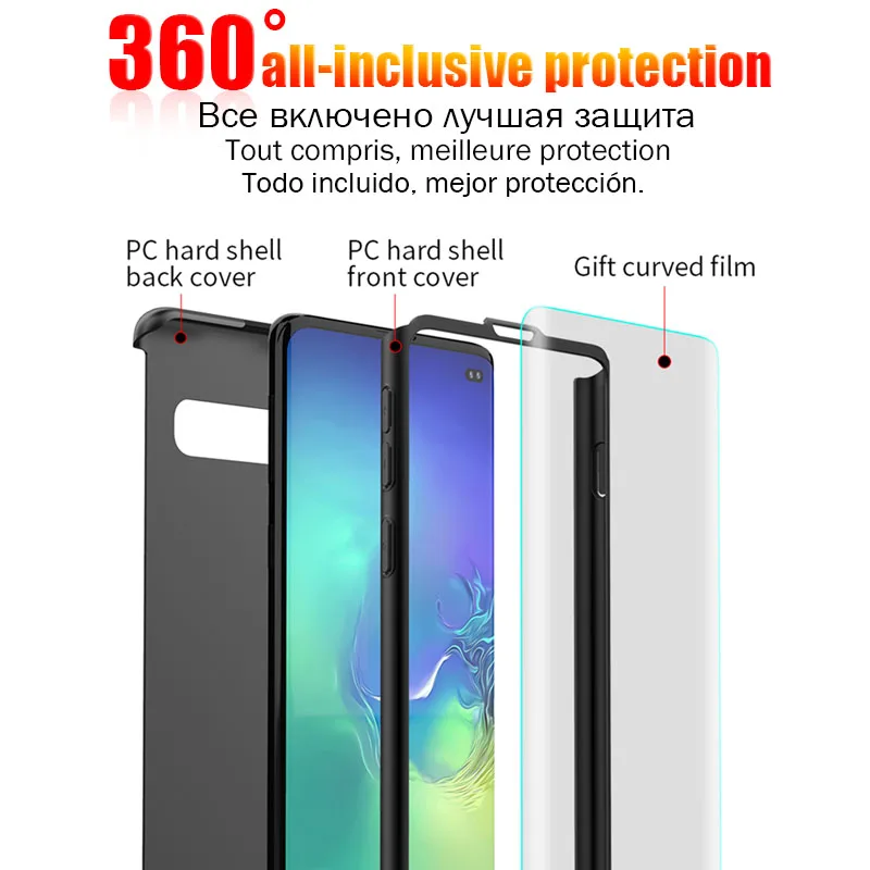 Чехол для телефона Samsung Galaxy A10, A20, A40, A50, A71, A51, A70, S20 ultra, S10, S9, S8 Plus, S10E с полным покрытием, чехлы из закаленного стекла, 360