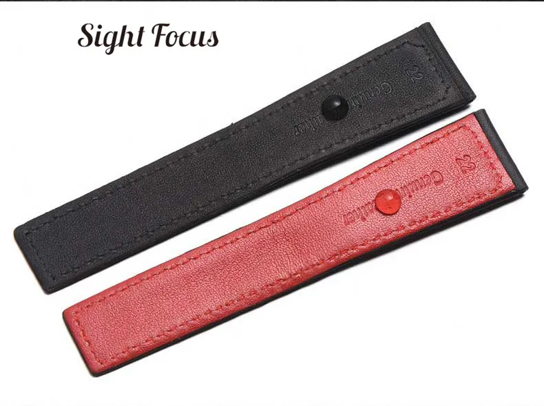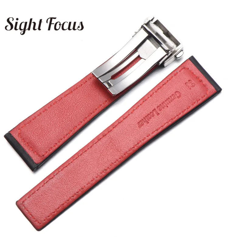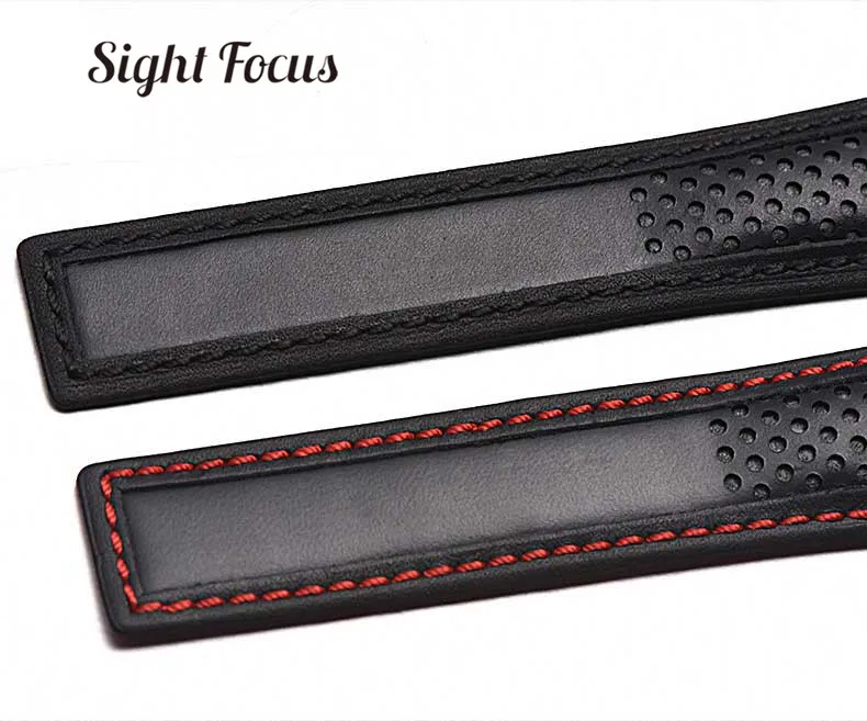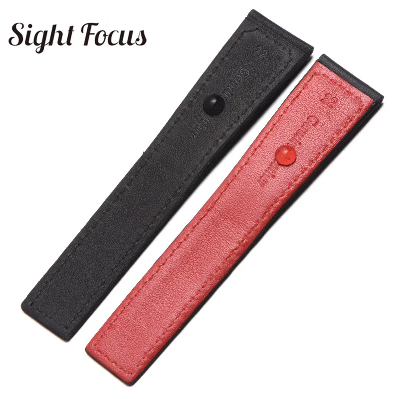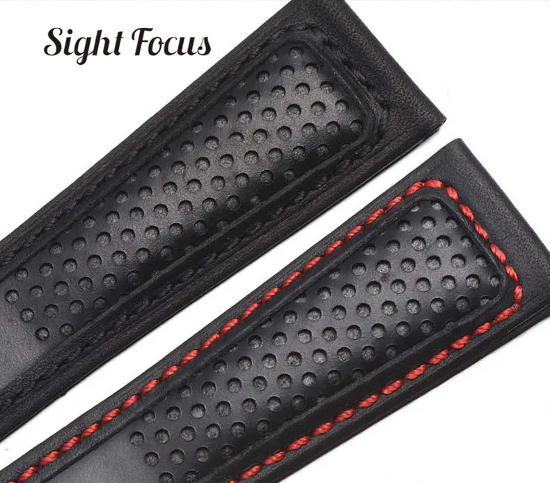 Ремешок из перфорированной кожи для часов, сменный Браслет из воловьей кожи для наручных часов, размер 22 мм, чёрный, красный