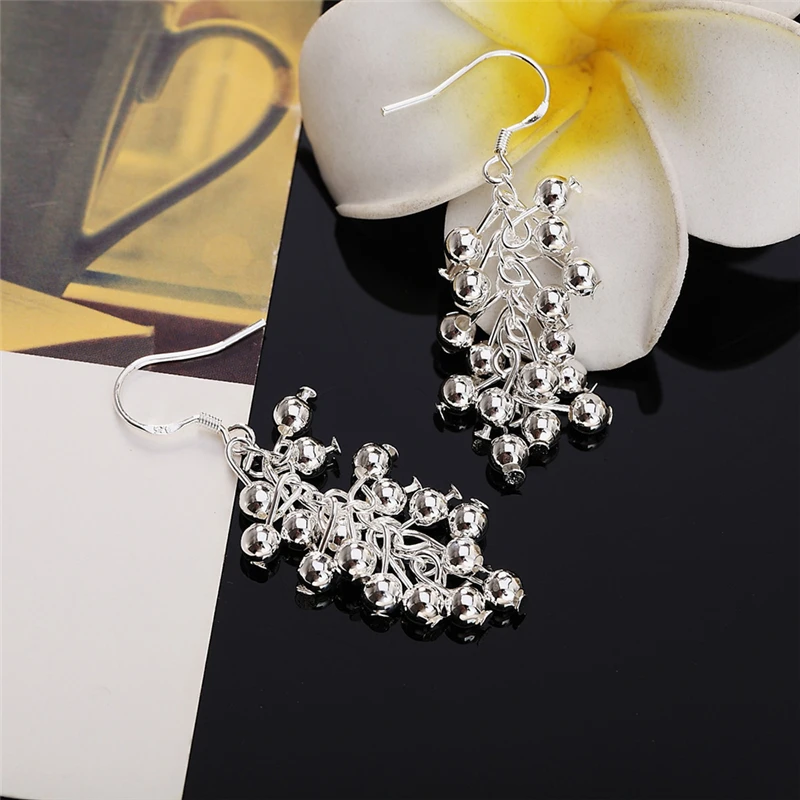 Серьги DOTEFFIL из серебра 925 пробы с гладкими виноградными бусинами, модные женские серьги-подвески, свадебные ювелирные изделия