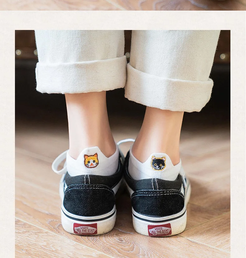 Носки женские хлопковые с мультяшным котом, носки с милыми животными Смешные в Корейском стиле Харадзюку, короткие, дышащие, для девушек, Прямая поставка