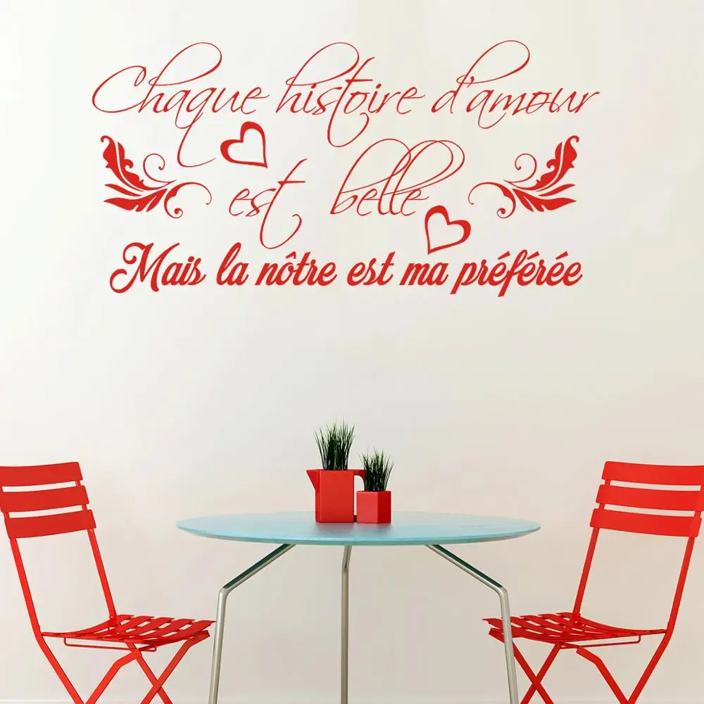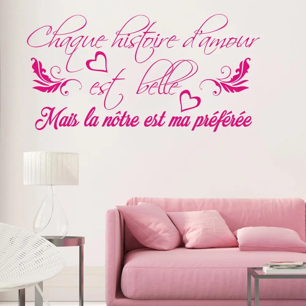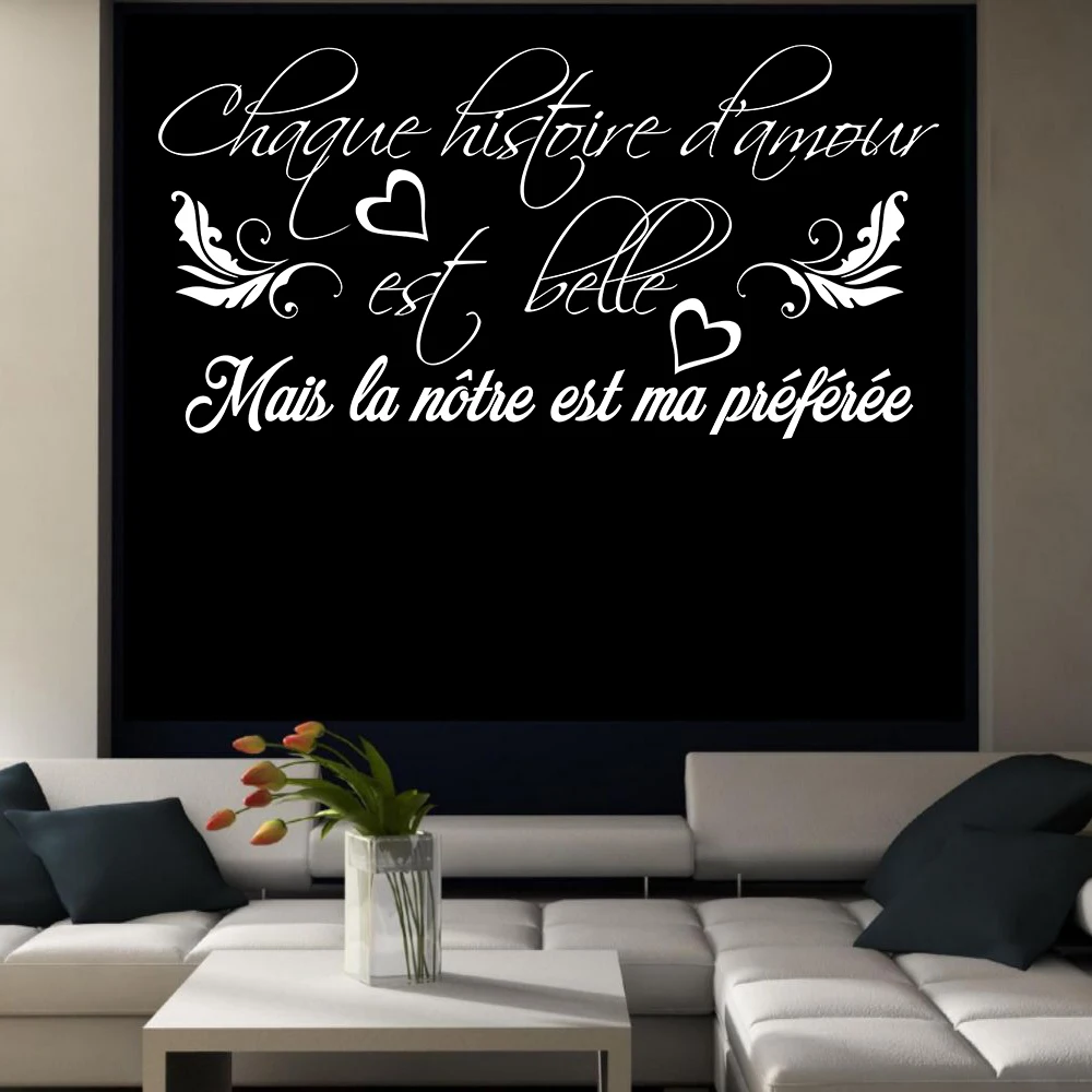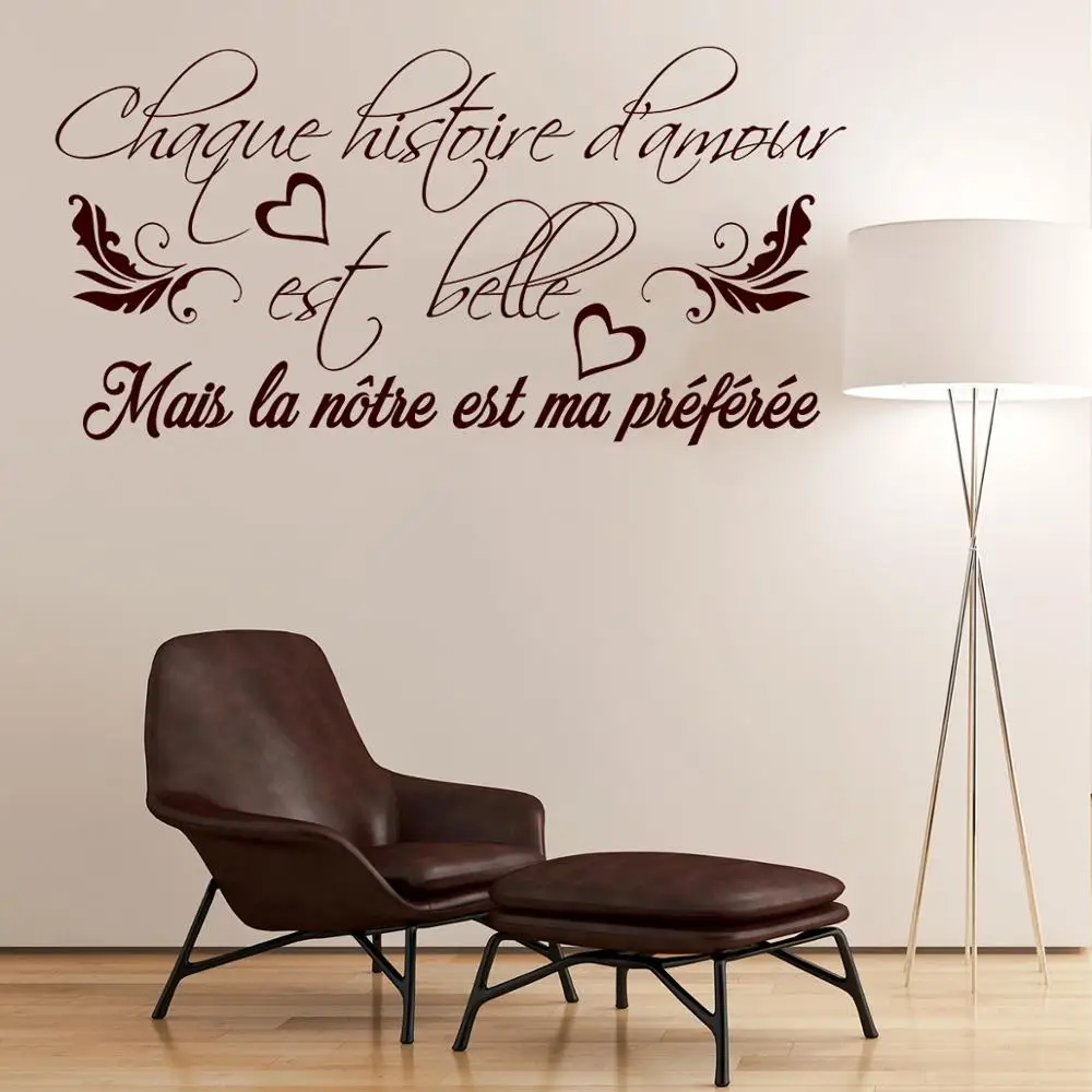 Наклейки на стену французский известный любовь Цитата Chaque Histoire d'amour вдохновляет фразу Наклейки на стены для спальни
