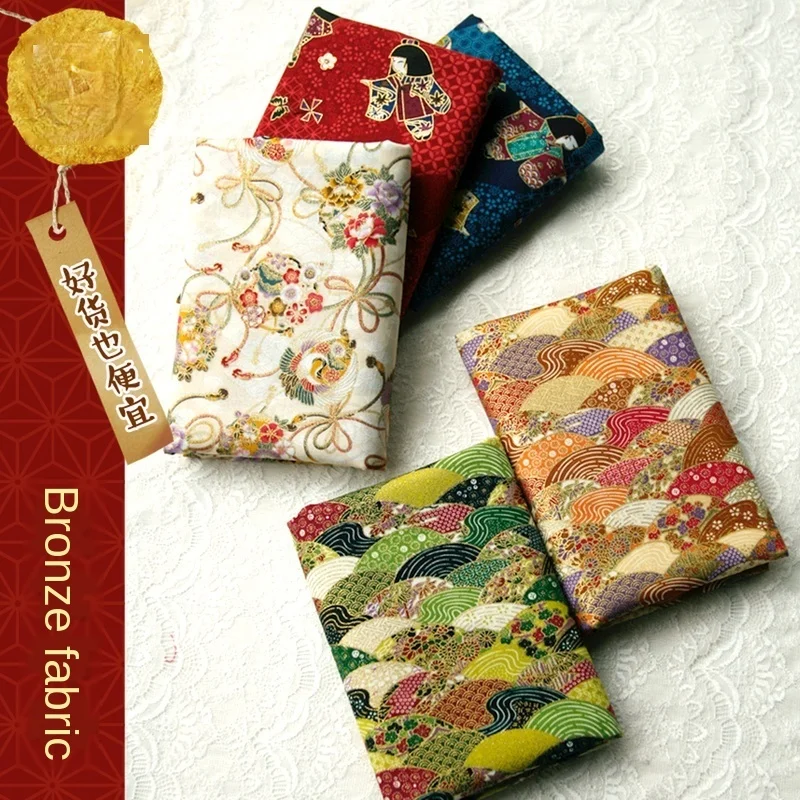 Хлопковая ткань в японском стиле, с принтом бронзы, 140x50 см
