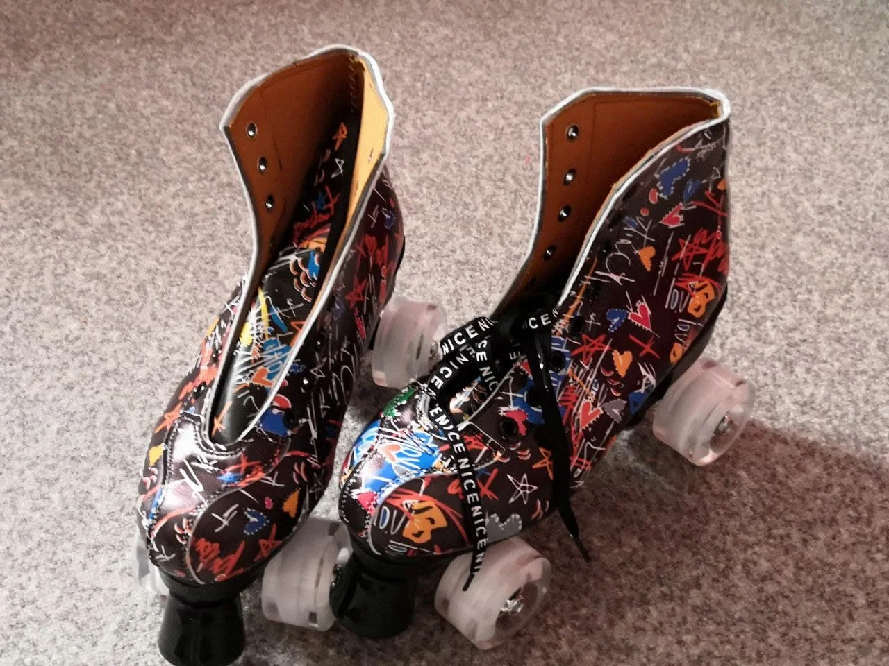 Значит так. Товар шел почти 2 месяца, новогодний подарок запоздал, но это не так страшно - кататься все равно летом будем. Вначале пришло сообщение что таможня не пропустила, но продавец сообщил, что "забей, всё дойдёт". И дошло. Службой DPD до хаты. Коньки смотрятся отлично, всё как описано, есть шнурки, ключ, сделано на вид надёжно, красиво, по виду всё крепко. Теперь один нюанс: размер проверим позднее, напишу дополнительный отзыв. А кататься будем летом, но тем не менее в квартире и в коридоре проверим. Тоже дополню отзыв...