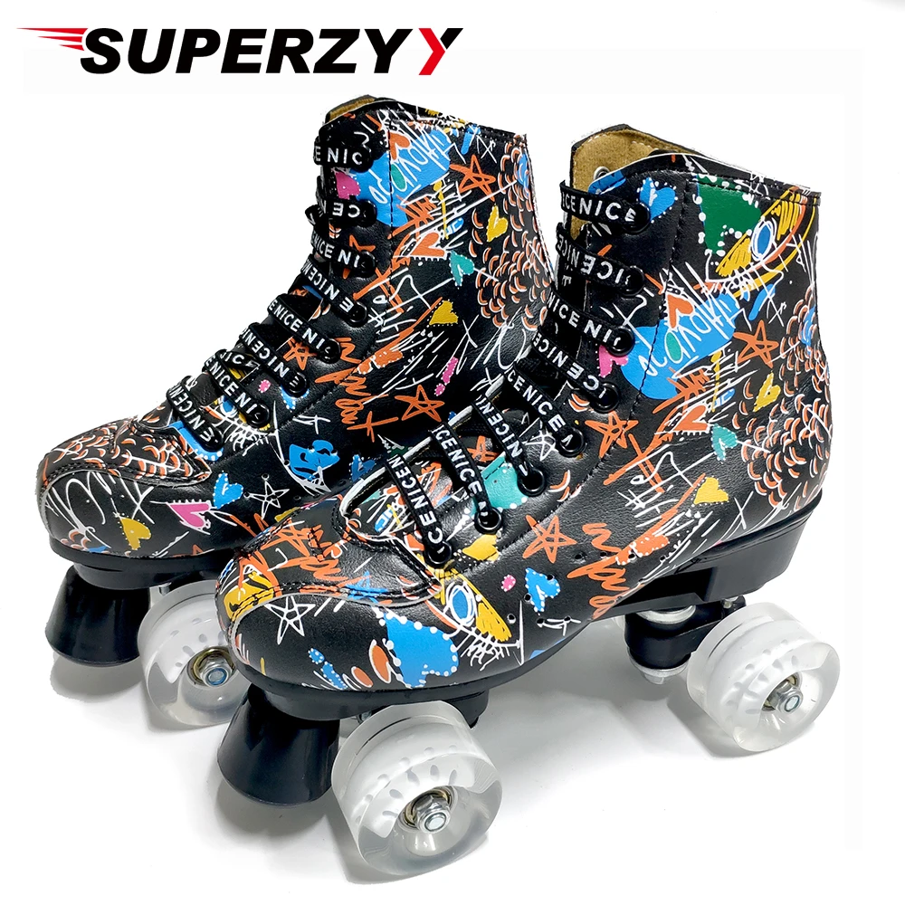 Роликовые коньки из микрофибры, двухрядные 4-колесные Полиуретановые ролики, раздвижные роликовые коньки, детские подарки, Роликовые кроссовки для тренировок