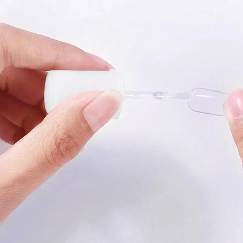 Нанесите клей на заднюю часть поддельного ногтя, затем переведите ноготь с переднего конца ногтя на задний конец и плотно прижмите его. Нажмите на него около 10 секунд, чтобы крепко приклеить его.