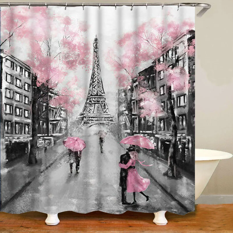 Элегантный цветочный душ с Парижской башней, занавески для ванной комнаты, 3D Розовый французский коврик для ванной, коврик для ванной, художественный домашний декор