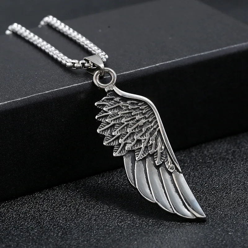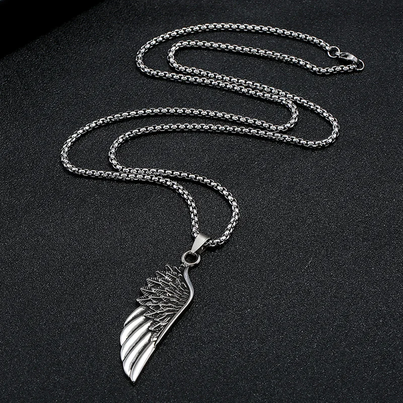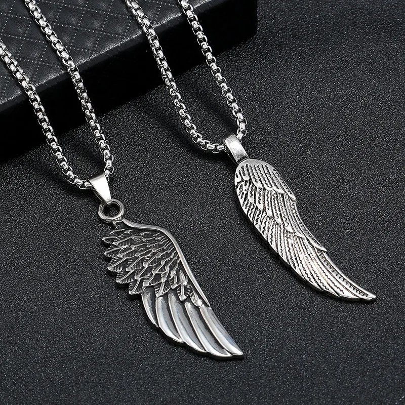 Индивидуальная Мужская и женская бижутерия, винтажное ожерелье с подвеской в форме крыла ангела, длинное ожерелье из нержавеющей стали, подвески