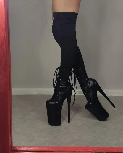 Ботильоны на высоком каблуке 9 дюймов для банкета, на весну и осень, на тонком каблуке 23 см, для танцев на шесте, матовый черный, Модельные ботильоны для сцены