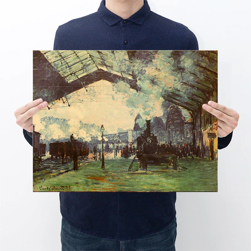 Ностальгический известный Импрессионизм известная картина Мак железнодорожная станция восход солнца ретро крафт-бумага постер украшение для дома живопись