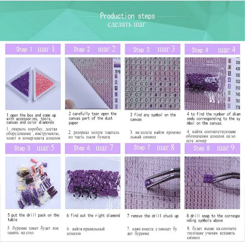 Наши алмазные картины являются полуотделанными и не включают оправы. Мы предоставим инструменты алмазной вышивки для вашего бренда. Мы увеличим алмаз на 30%! Хотя наши продукты не самые дешевые, качество нашей продукции самое лучшее! Когда вы закончите, вы можете отправить нам фотографию вашей картины, мы покажем ее покупателям по всему миру!