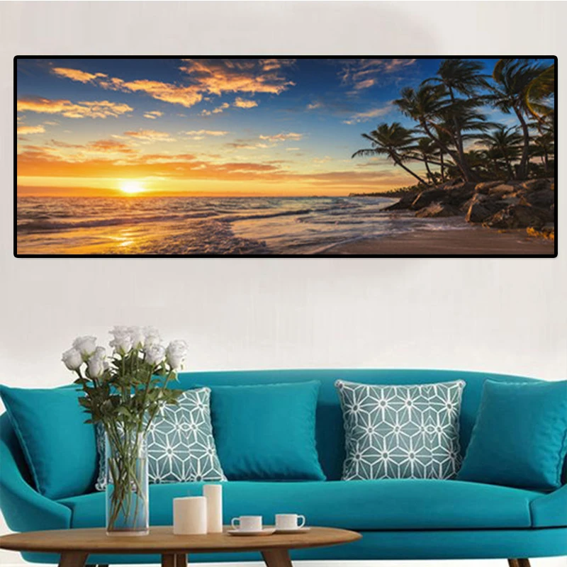 Пляжный фон с изображением пальмовых пальм из натурального моря, панорамный пейзаж, Картина на холсте, плакаты с принтом, Настенная картина для домашнего декора