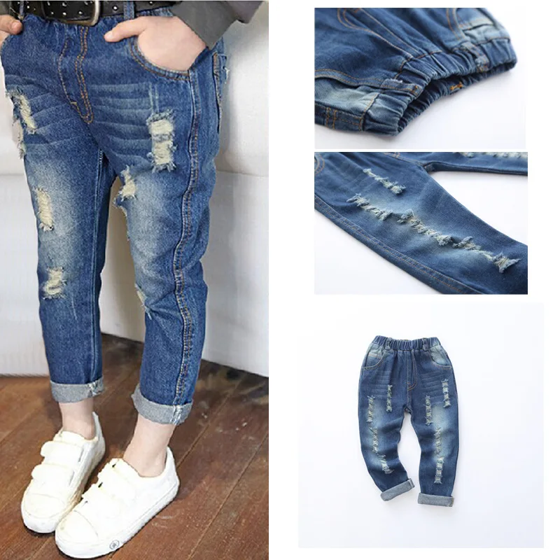 Джинсы для маленьких девочек, новые весенние рваные джинсы в Корейском стиле для девочек, детские повседневные Мягкие джинсовые штаны с дырками, ковбойские джинсы для маленьких девочек, одежда для детей, джинсы для девочек, одежда для девочек, одежда для детей, одежда для девочек