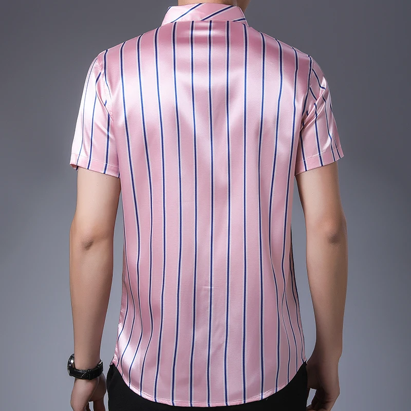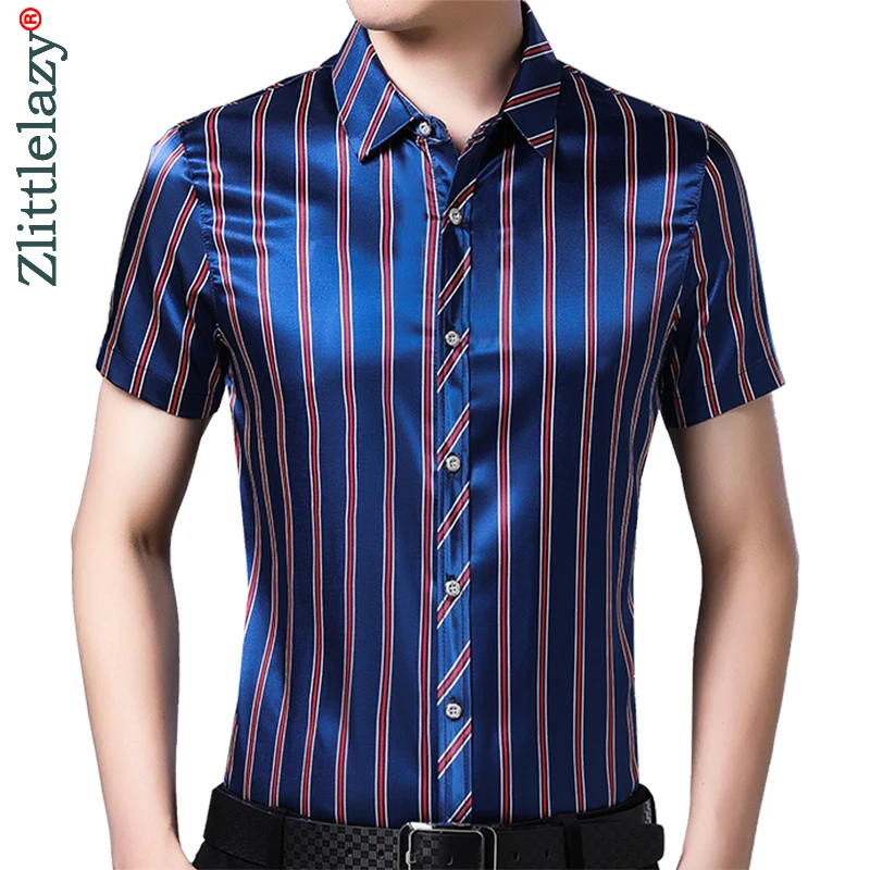 Новинка 2022, мужская рубашка с коротким рукавом, летняя Уличная Повседневная рубашка в полоску, приталенная повседневная одежда, модная 4145