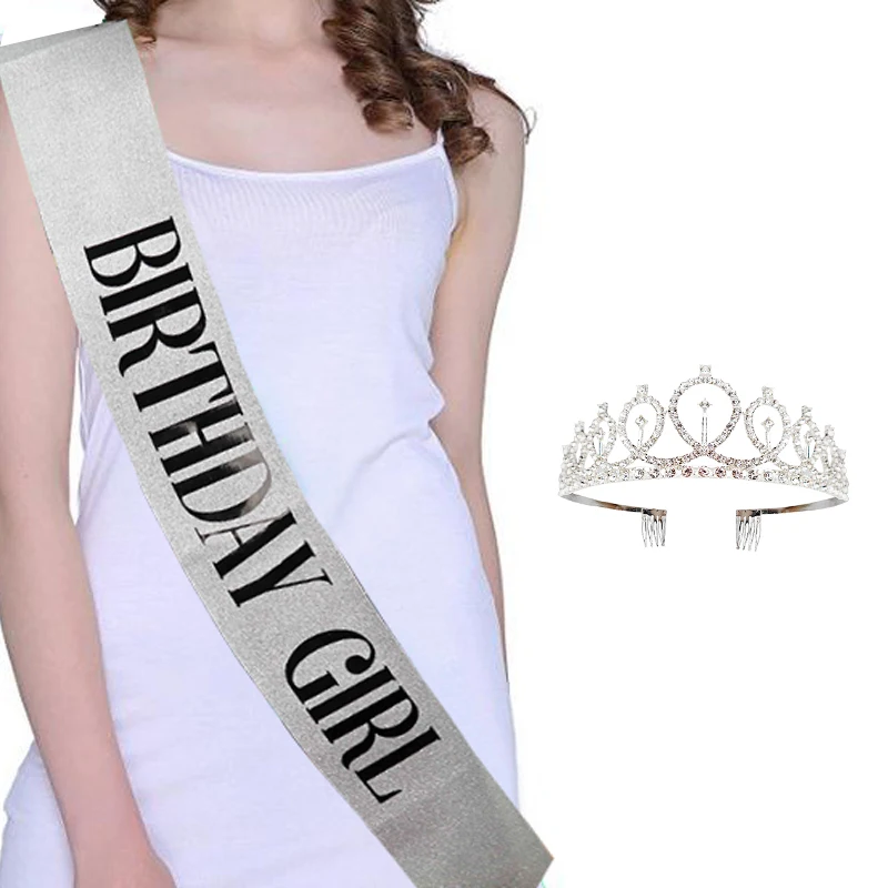 Тиара Женская атласная с кристаллами, украшение для дня рождения, корона принцессы, повязка на голову, 18, 21, 30, 40, 50