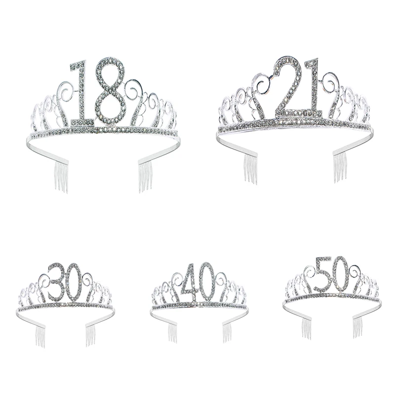 Украшения для дня рождения, тиара со стразами для взрослых, 18, 21, 30, 40, 50, 60, Женская корона, аксессуары для волос