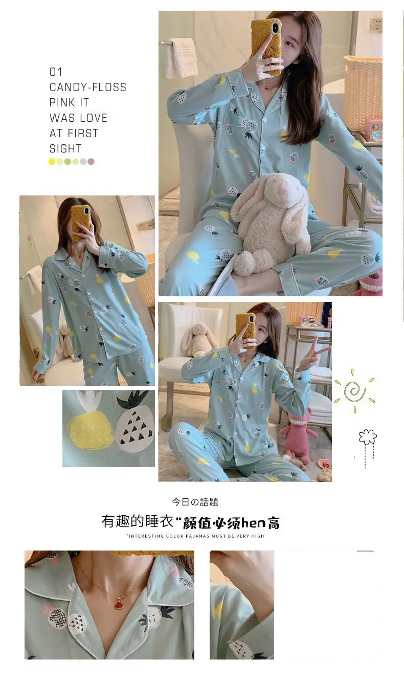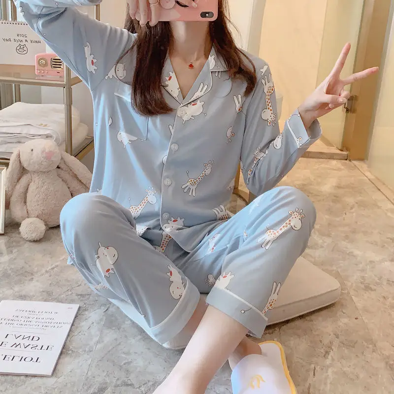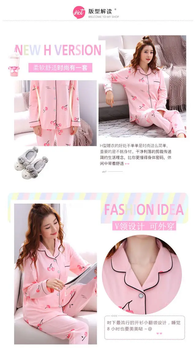 Пижамный комплект Женский, с длинным рукавом и кардиганом, на осень