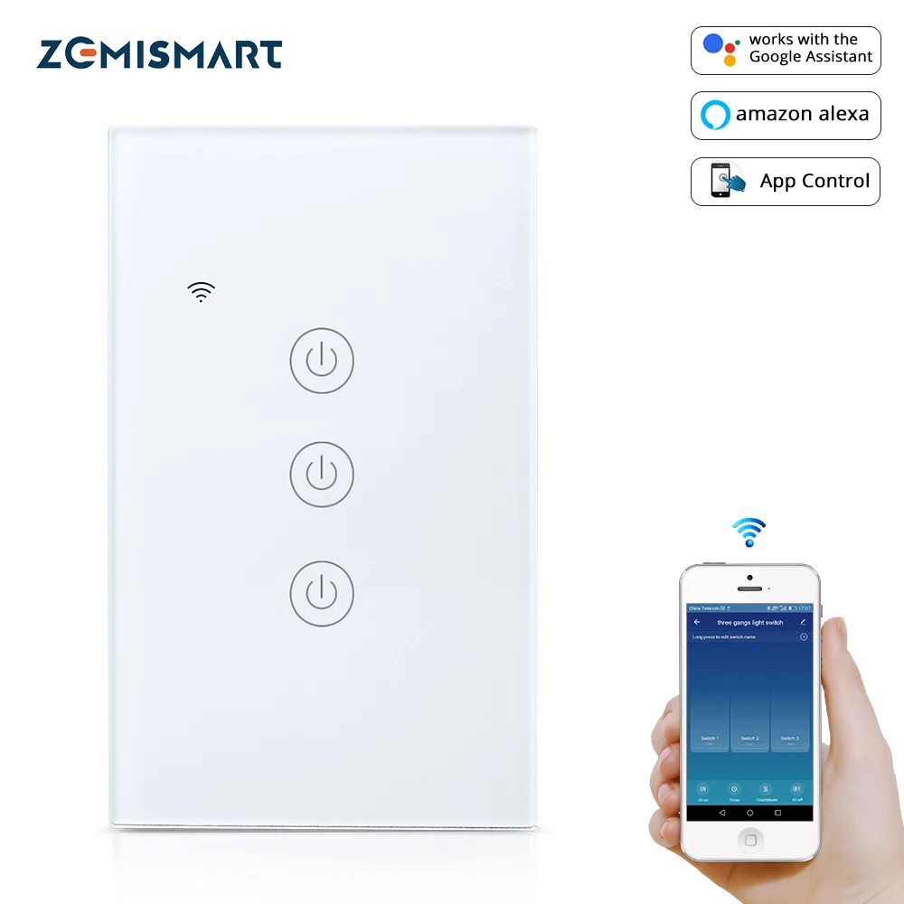 Zemismart нам Tuya WiFi светильник переключатель нейтральный дополнительного провода 1 2 3 Gang Alexa Google домашний помощник приложение Smart Life Управление 100V 240V