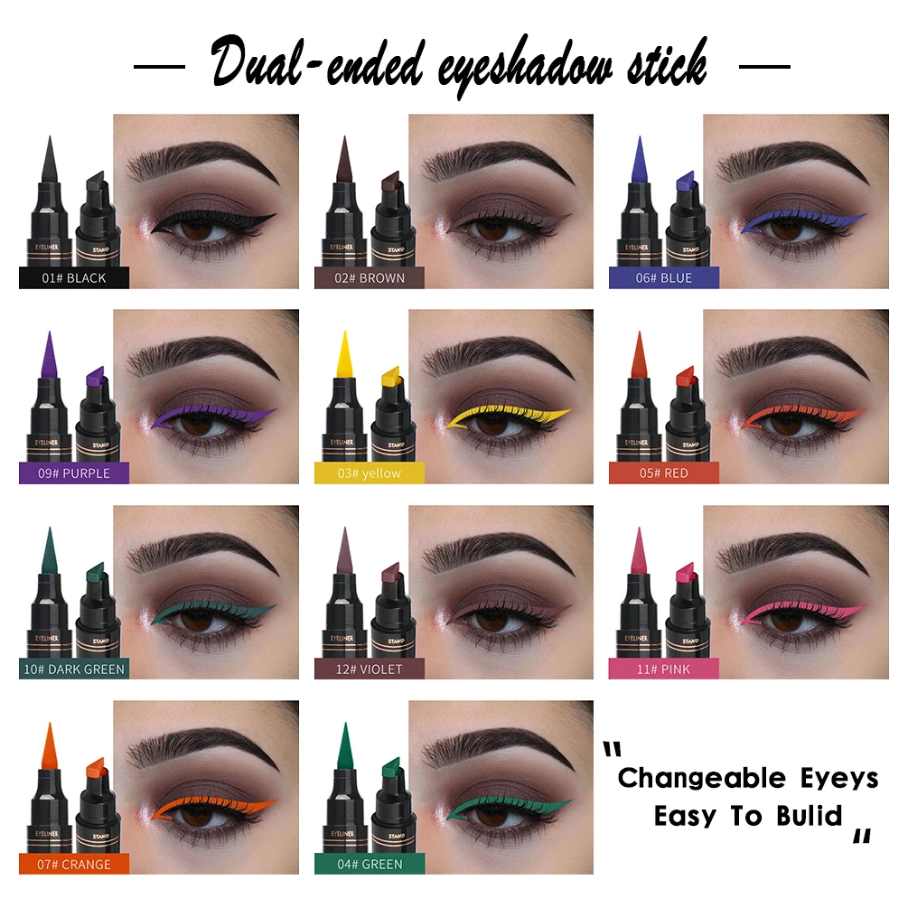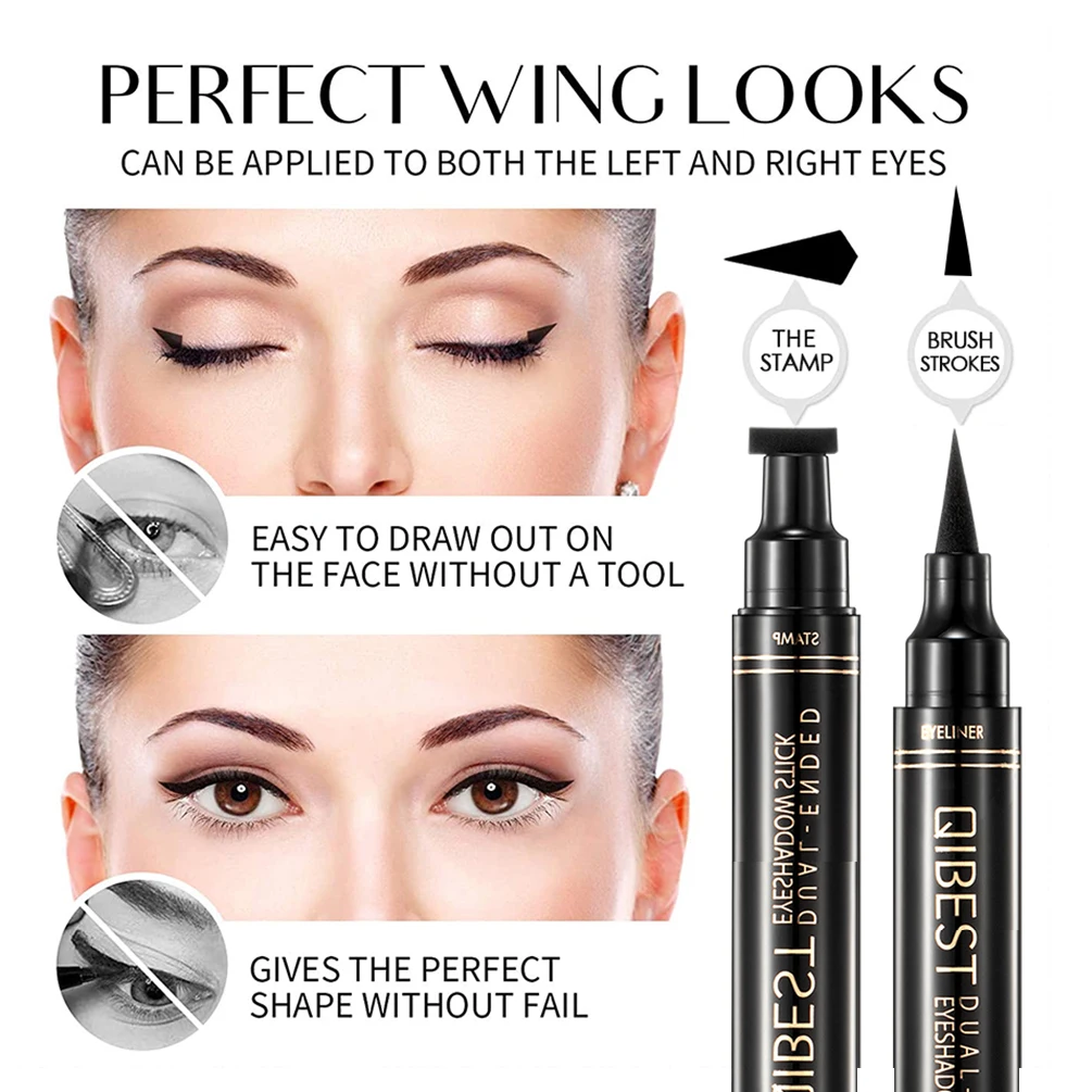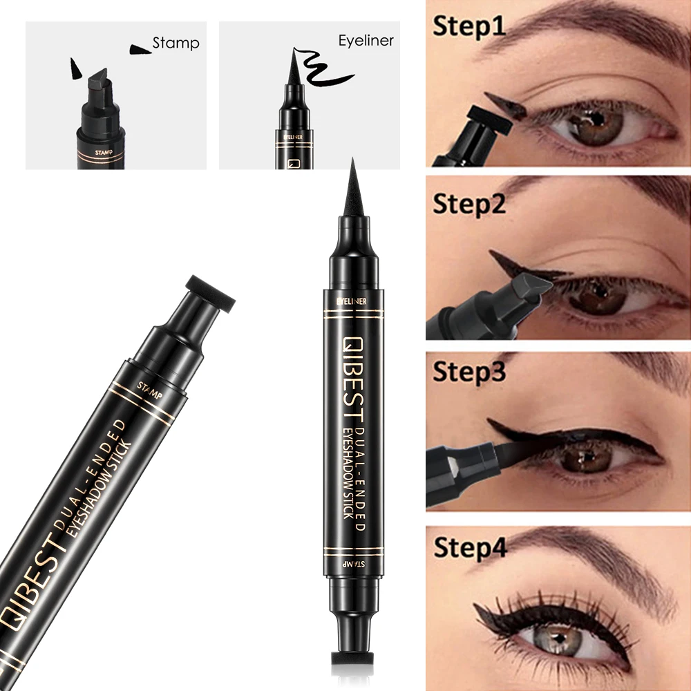 QIBEST Жидкая подводка для глаз карандаш супер водостойкие двуглавые штампы 12 цветов подводка для глаз кошачьих глаз подводка для глаз maquiagem косметический макияж