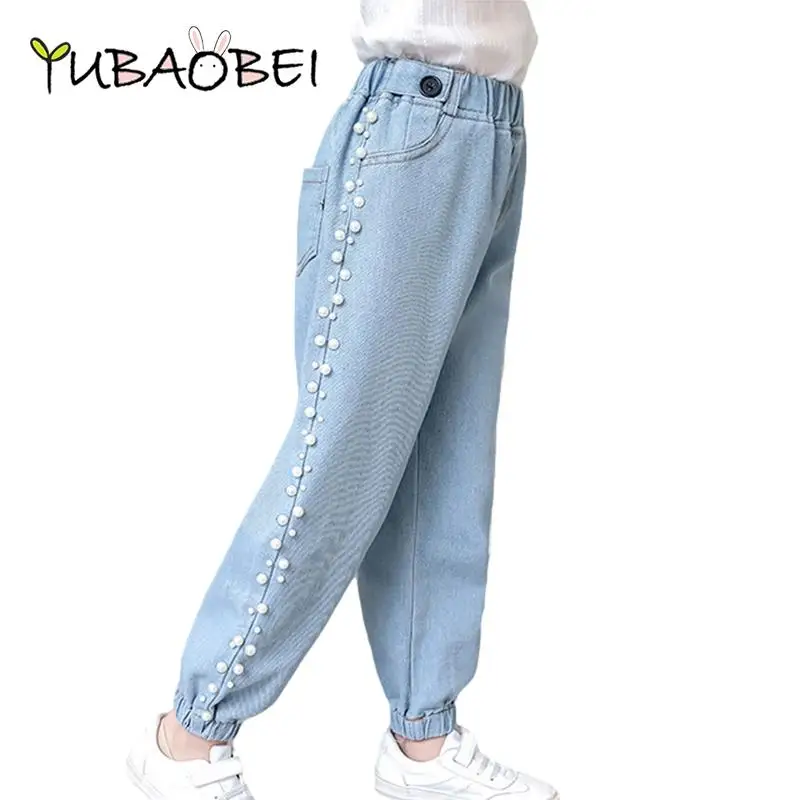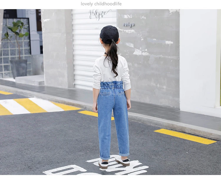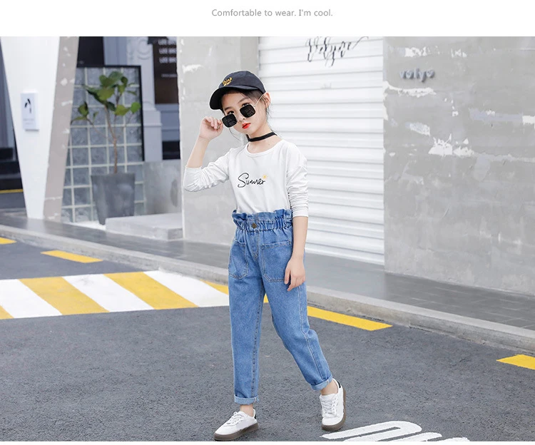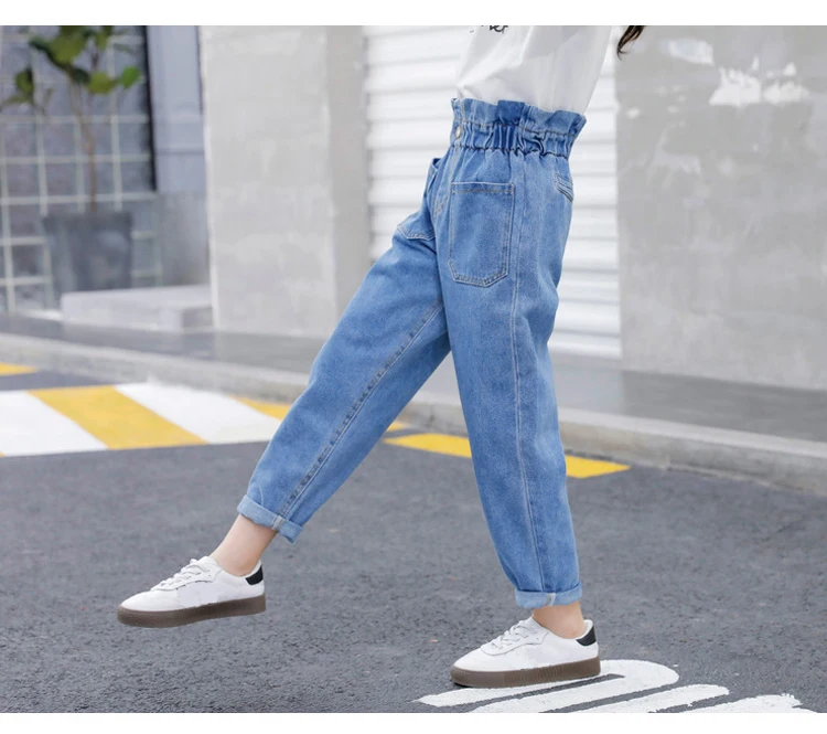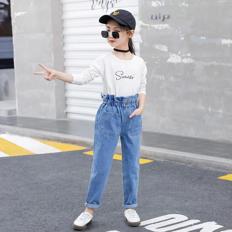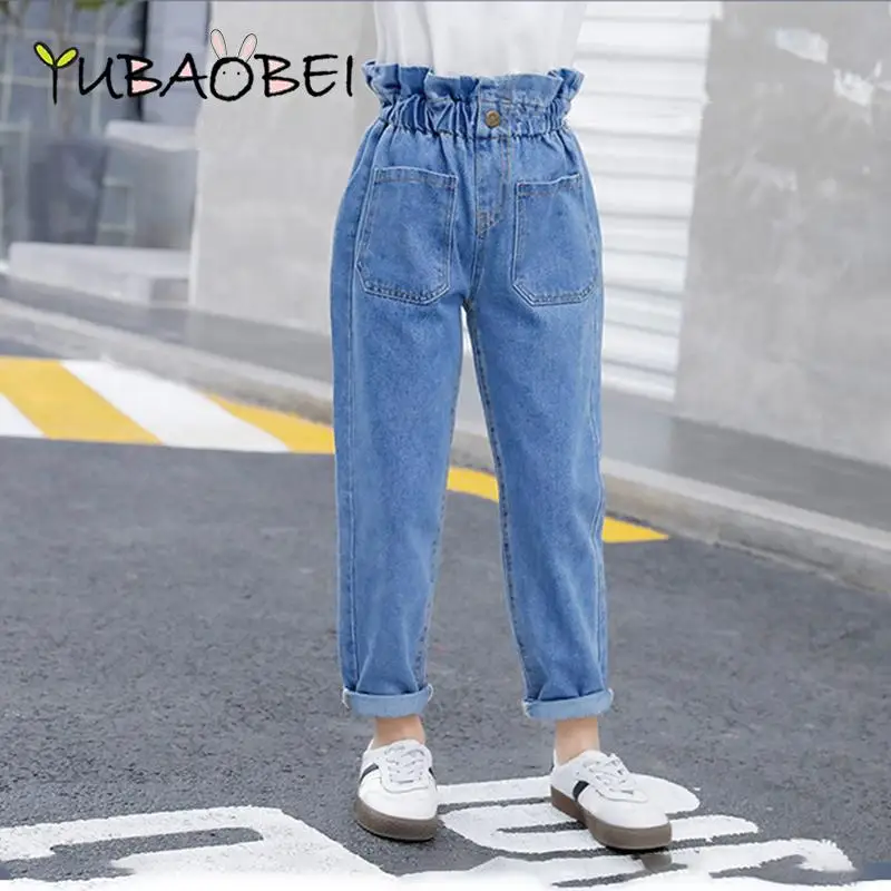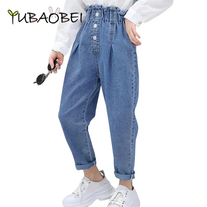 Джинсы с высокой талией для девочек 12 лет, облегающие синие брюки из денима, одежда для подростков, весна-осень