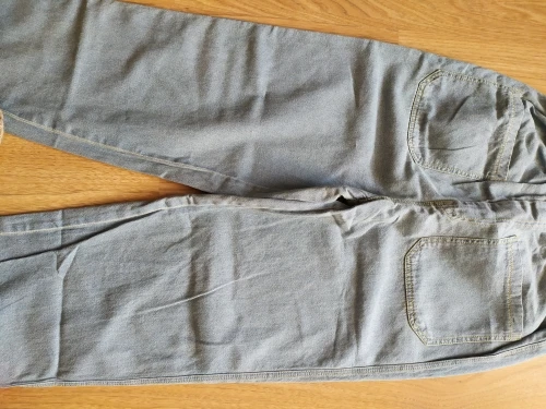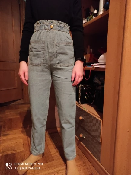 Ткань совершено, не та, что на фото. Цвет тоже. По факту пришли джинсы из тонкой ткани, не держат форму как на фото. Совсем летние. Цвет с желтым оттенком, в местах швов, просто грязно-желтый цвет. Не довольна покупкой, даже и за 200₽ не купила бы.