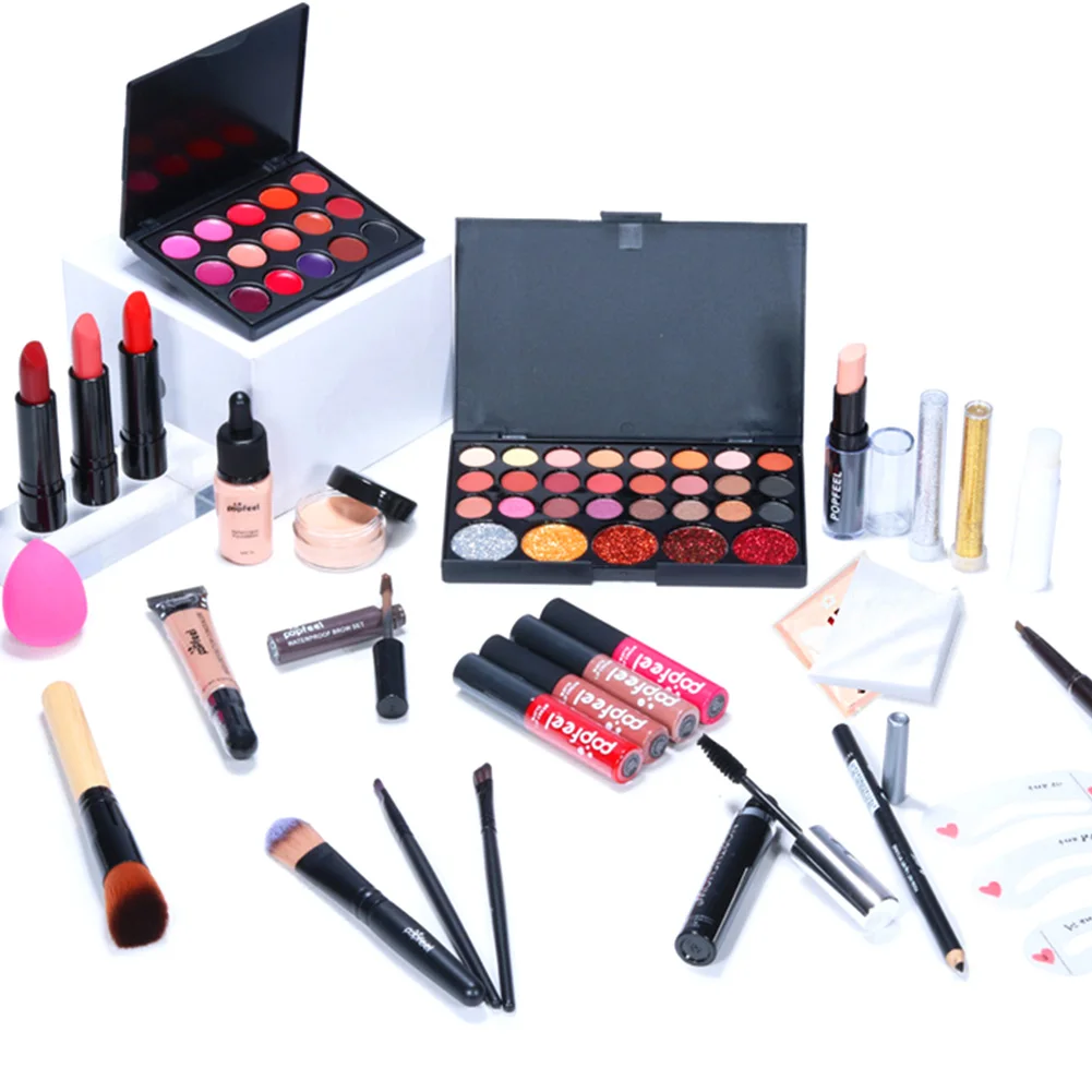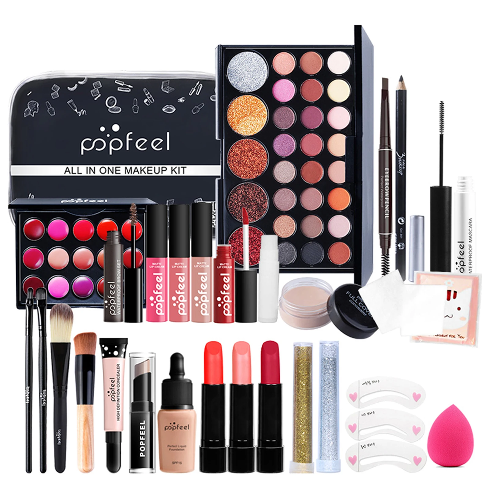 Набор для макияжа, 27 шт., матовая губная помада, профессиональная палитра теней для век, Подарочная тушь с косметичкой, дорожная портативная стойкая